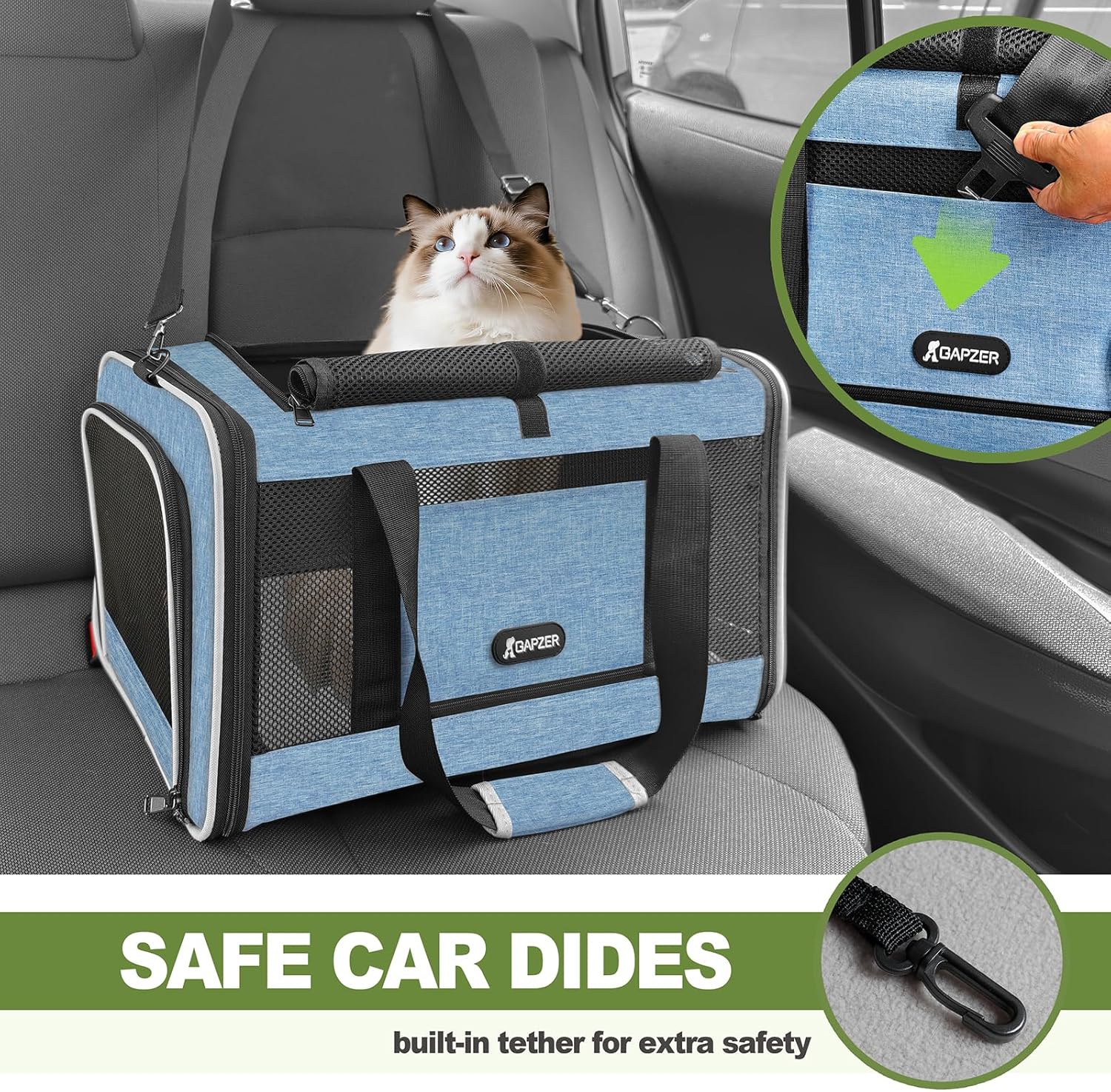 durable strong mesh panels auto-locked zipper safe car ride for pets durable strong mesh panels auto-locked zipper safe car ride for pets
