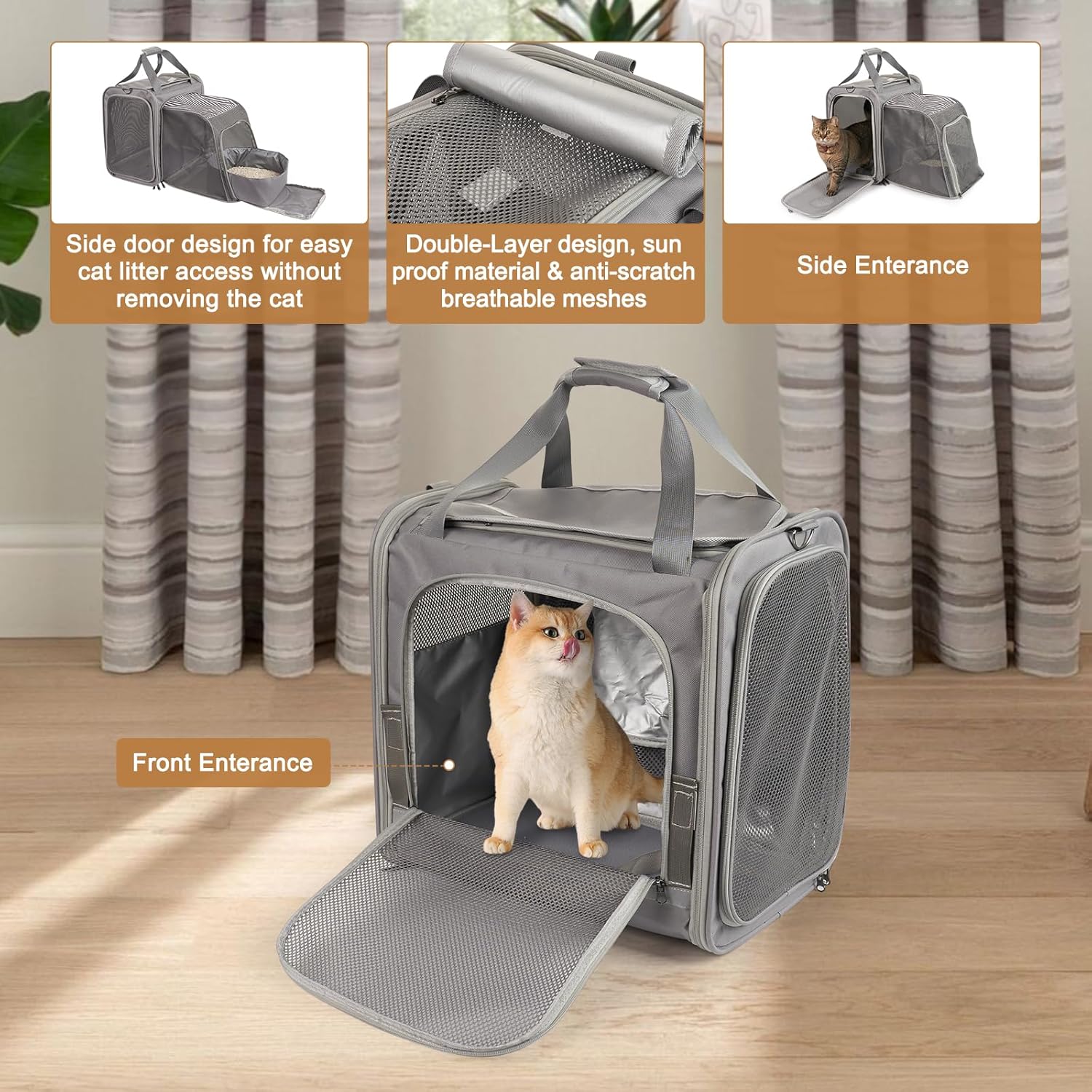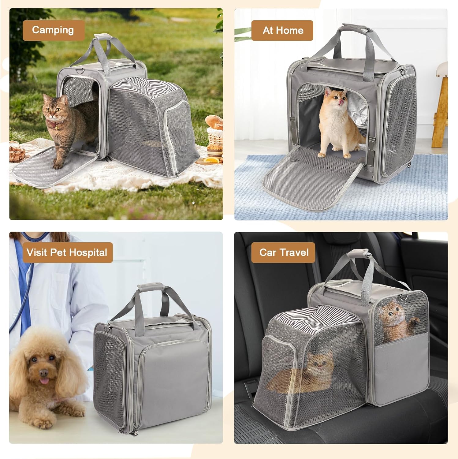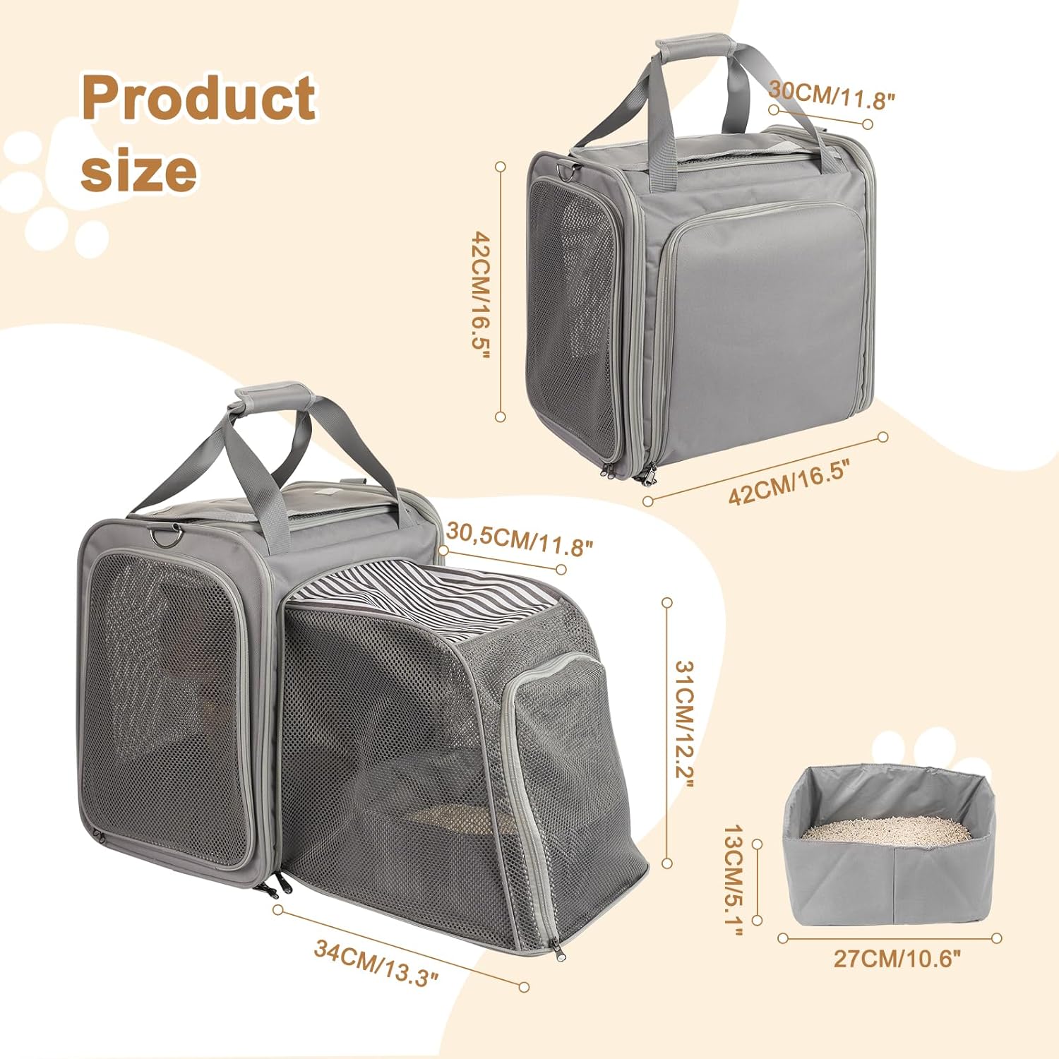 Cat Carrier with Litter Box, LitaiL Soft Cat Travel Carrier for Car Travel Long Distance, Expandable Large Cat Carrier, up to 20 lb to Road Trip, Camping, Hiking, Grey
