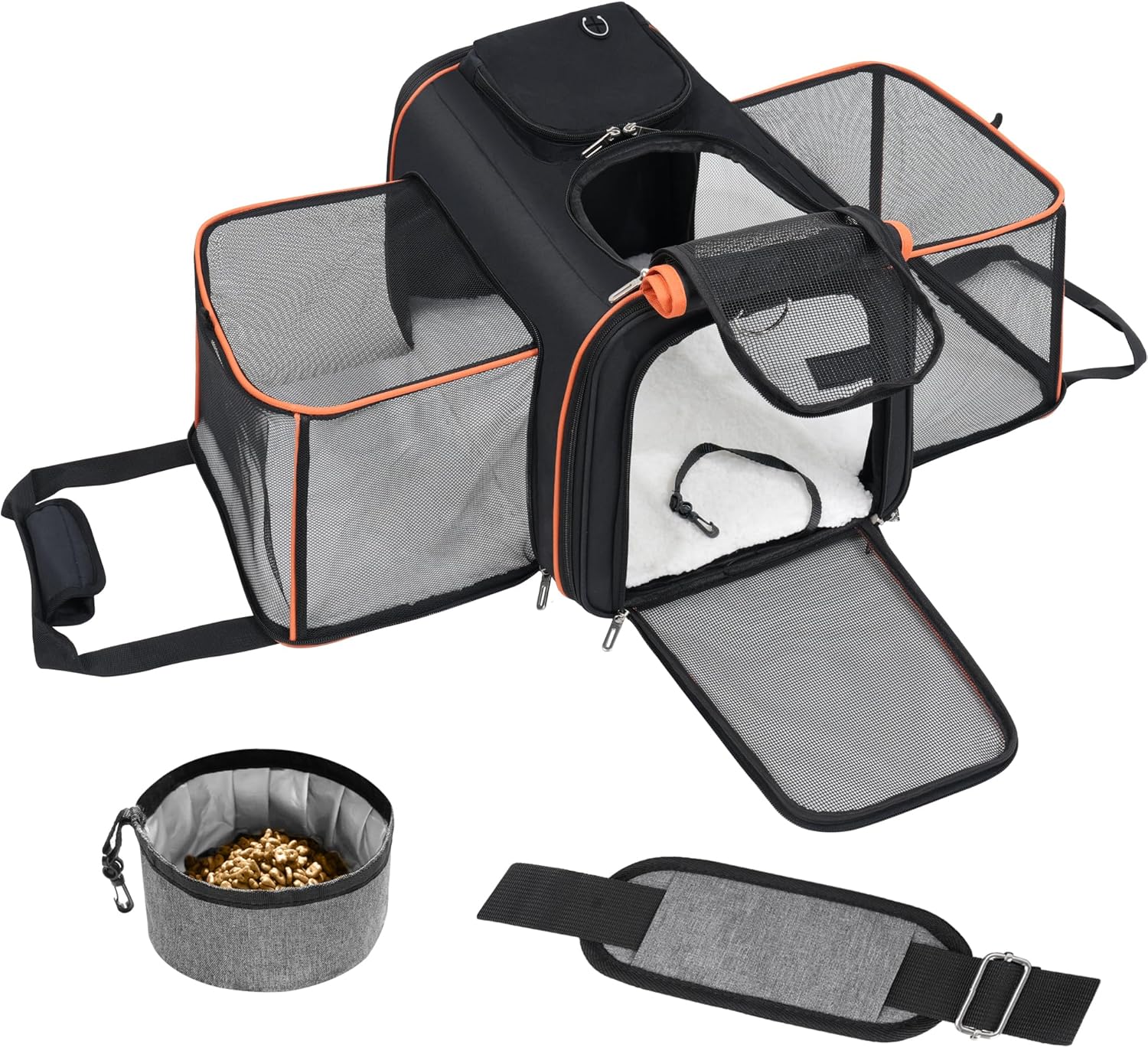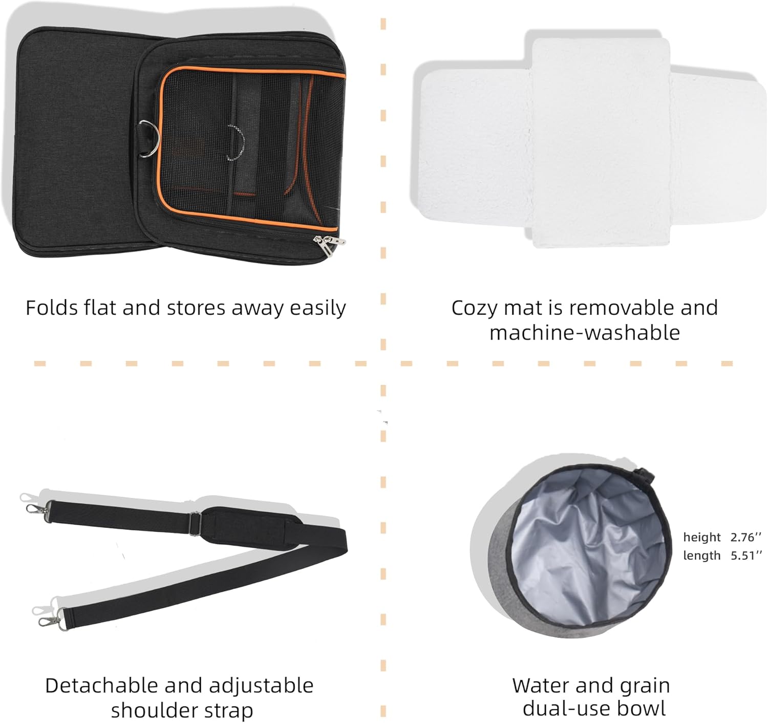 Cat Carrier,Portable Pet Carrier Bag for Cats and Small Dogs,Foldable Soft-Sided and Scratch-Proof mesh Cat Bag Pet Carriers,Airline Approved Pet Carrier,Pet Travel Carrier Up to 15 Lbs,Black