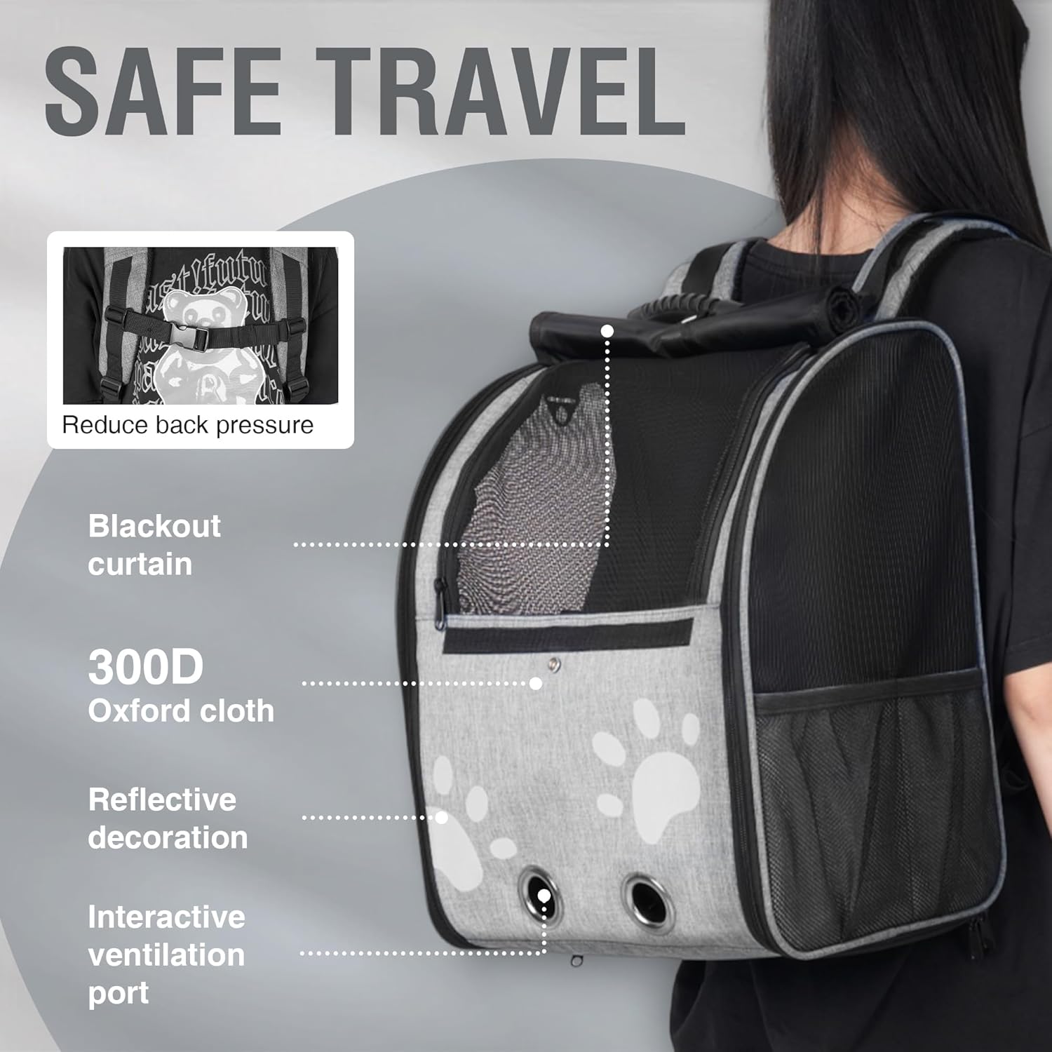 Designed for Convenience & Safety:Multi-Use Carrying,Functions as both a dog backpack carrier and a hand-carry pet travel bag.Practical Storage,Side mesh pockets hold treats, water bottles, or essentials.Nighttime Visibility,Reflective accents enhance safety during evening walks.Escape-Proof,Scratch-resistant mesh & a built-in safety leash keep your pet secure during outdoor adventures.