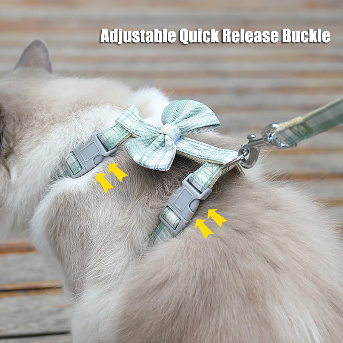 Cat Harness and Leash Set Escape Proof for Outdoor Walking Travel with Cute Green Bowtie, Kitten Soft Lightweight Small Adjustable Pet Vest Harness, S