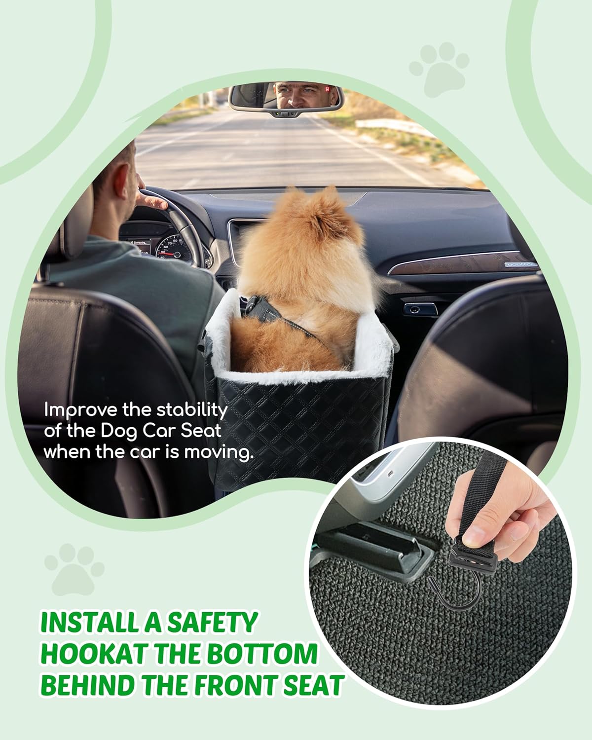 Stable fit for different types of center consoles: The bottom straps of the Dog Seat for Car can be used horizontally or vertically to adapt to different car center consoles. Dog Booster Car Seat are equipped with larger pet safety belt hooks to prevent your pet from jumping out.