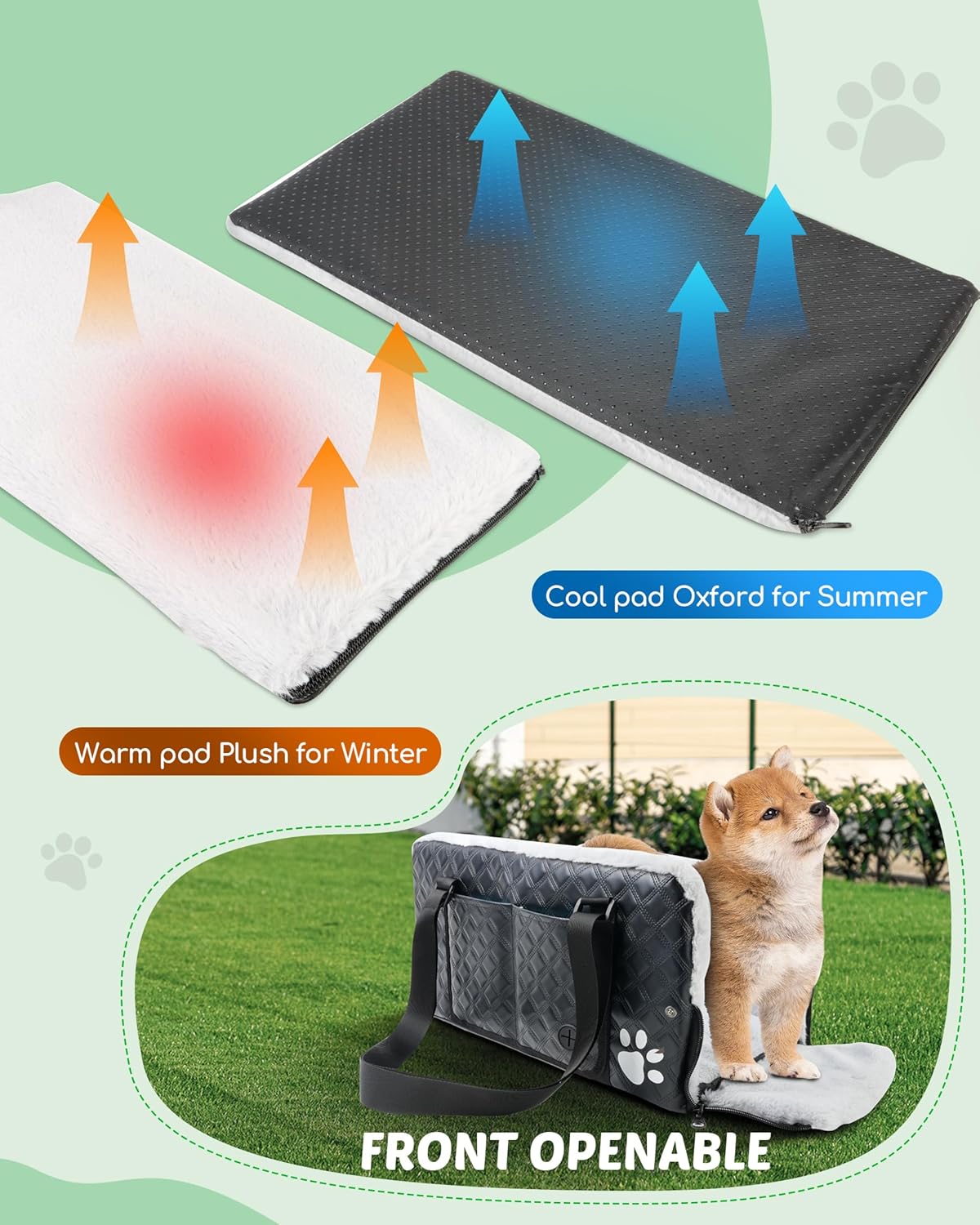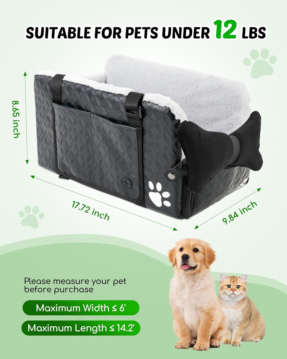 Center Console Dog Car Seat for Small Dogs, Soft Plush Car Bag for Dogs, Leather Portable Pet Cars Booster Seats, Convertible Handbag or Shoulder Bag with Cool Heat Pad, Support Pet Up to 12lbs