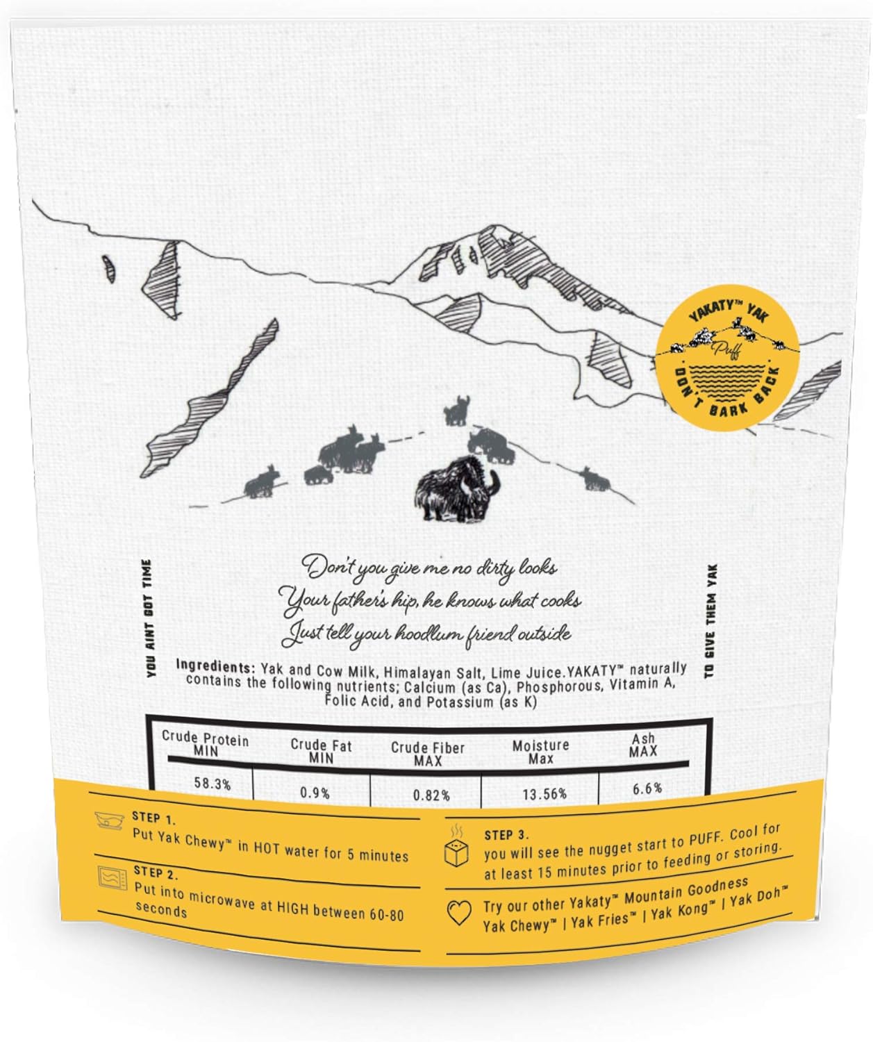Yak Gold Line-up: You may enjoy the family of different Himalayan Dog Treat Products: Yak Chewy, Yak POP, Yak PUFF, Yak FRIES, Yak Kong, Yak Doh…Yak MIX – a assortment of YAK all in one bag!