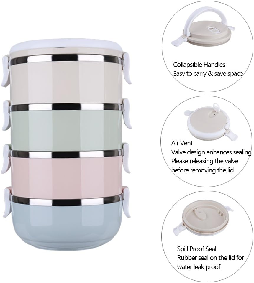 【Easy to Use】 The lid with thicken buckle that can perfectly match with each of the 4 bowls. With the buckle, you can connect the bowls together and become a 4‑tier . And you can just use one, two or three tiers if you want