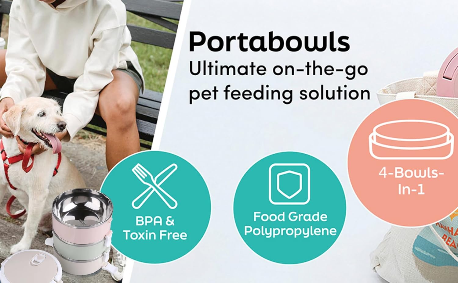 CHICIRIS Travel Dog Bowls, 4-tier portable stainless steel pet food container with handle, for dog and cat feeding, 24oz