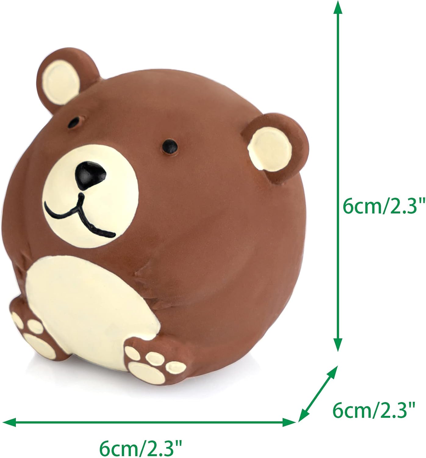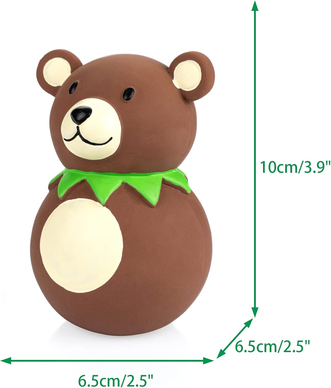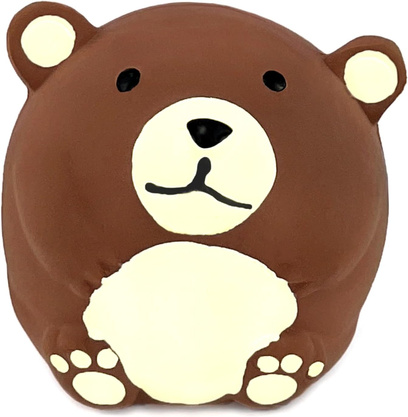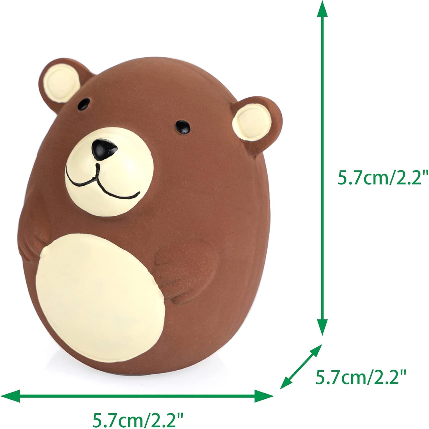 Chiwava toys are made from Latex,NON-TOXIC. No Stuffing. Toys coating is pleasant to the touch and soft, easy to clean. Toys come in set of 4 brown bear with funny different shaped (Long Stick Bear,Egg Shaped Bear,Bowling Ball Shaped Bear & Round Bear). have small squeaker which makes squeak sound when you squeeze it. Great for Fetch,Throw,Tug and Interactive Toy.
