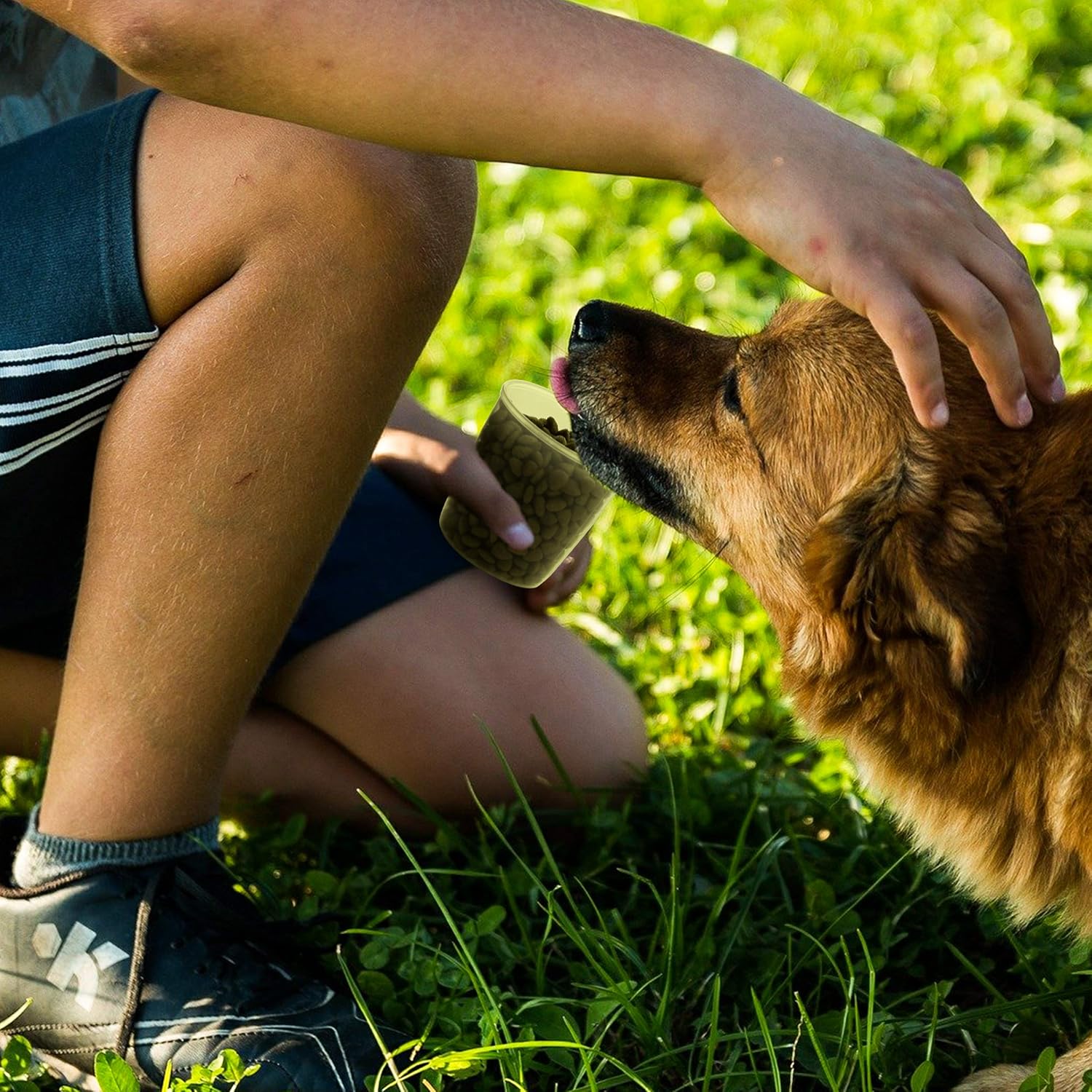 The pet food storage has measuring cup and pour spout. You don’t need shake the container to get the pet food, which provides a merry pouring feeling and makes every pouring neat and clean. Of course, you can use it as a little bowl for water or food when you are out.