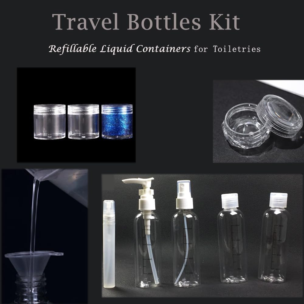 【Multifunctional and Best Companion】These multifunctional travel bottle sets are used to store your lotion, cream, shampoo, foundation, liquid soap, sunscreen, gel,medications/vitamins etc. They serve to organize your beauty and care products, whether for outdoor activities, travel, gym sessions, or everyday use. Suitable for both men and women, these kits are essential for keeping your essentials handy in your luggage, backpacks, or sports bags.