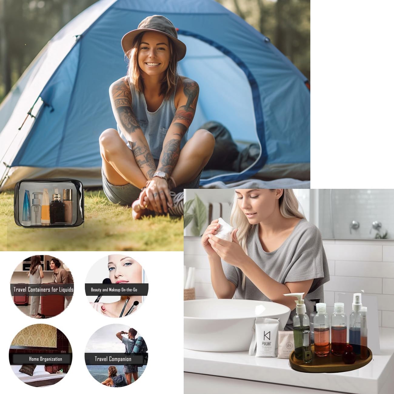 【Waterproof, Compact, and Portable】The water-resistant clear bag and leak-proof bottle design protect your luggage and clothing. Lightweight and portable, it’s ideal for storing toiletries and cosmetics. It saves space and keeps your luggage organized. The transparent design of the bottles allows you to quickly see the contents and ensure you take exactly what you need without opening each bottle. Perfect for travel, hiking, hotels, camping, swimming, fitness, makeup, etc. –The entire set is lightweight and compact, ideal for carrying in hand luggage or a backpack..