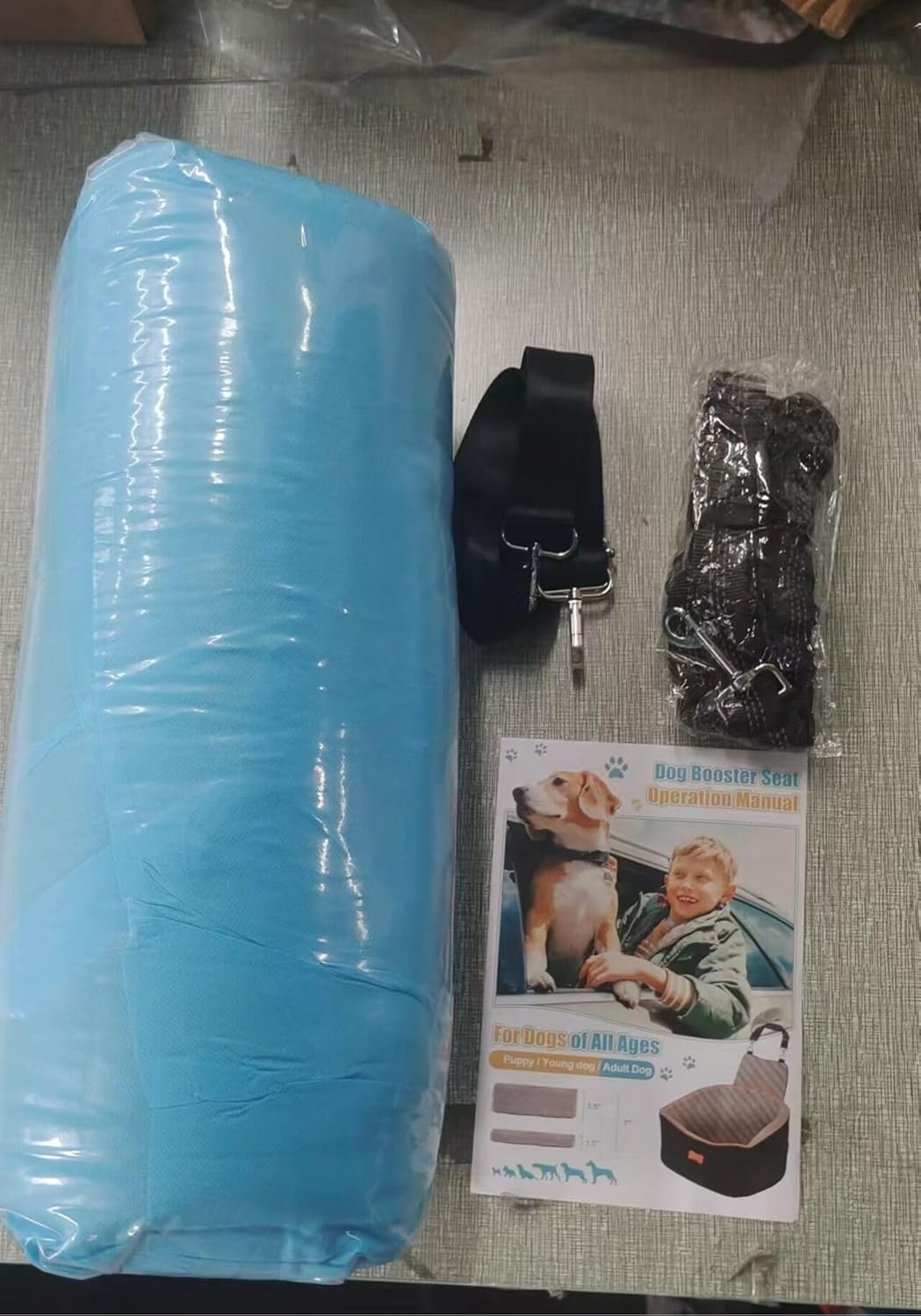 All-in-One Travel Package: Package includes 1 booster seat, 2 different height booster cushions, 1 car dog safety belt, 1 fabric bone toy. No need to buy extra accessories to use with it. Both sides of the seat have large storage pockets for leashes, snacks, cups, and other puppy-friendly items to keep your car tidy