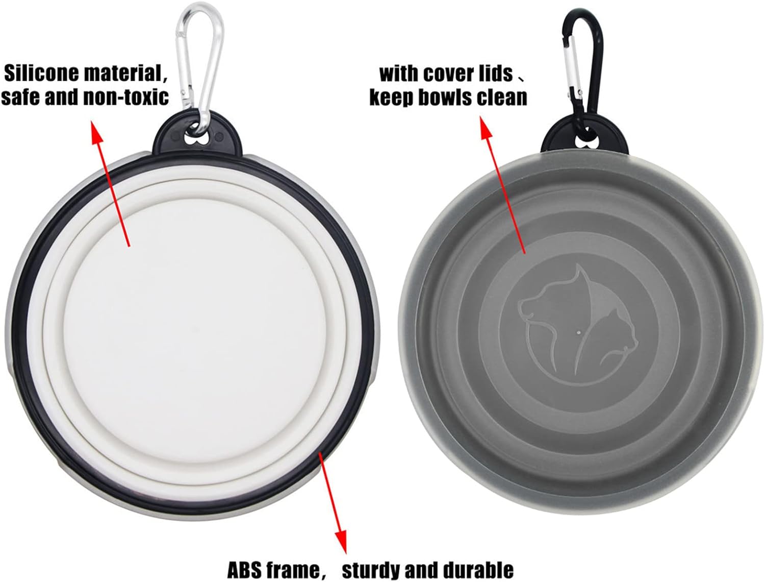 COLLAPSIBLE & CONVENIENT – The collapsible dog travel bowl is lightweight, convenient for storage because of the collapsible design, save space and easy to expand or fold.Come with cover lids,PLEASE NOTE,these lids are not airtight type, so it is not leak proof,only to use to keep bowls clean from dust and dirty when carry.