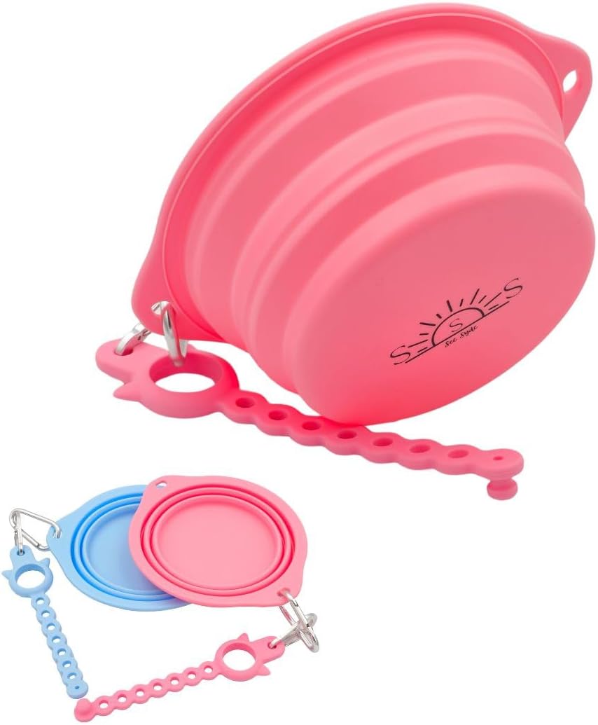 Collapsible Dog Bowls for Travel, Dog Portable Water Bowl for Dogs Pet Foldable Feeding Watering Dish for Traveling Camping, BPA Free | 800ml| 27oz| Includes Carabiner & Water Bottle Holder (Pink)