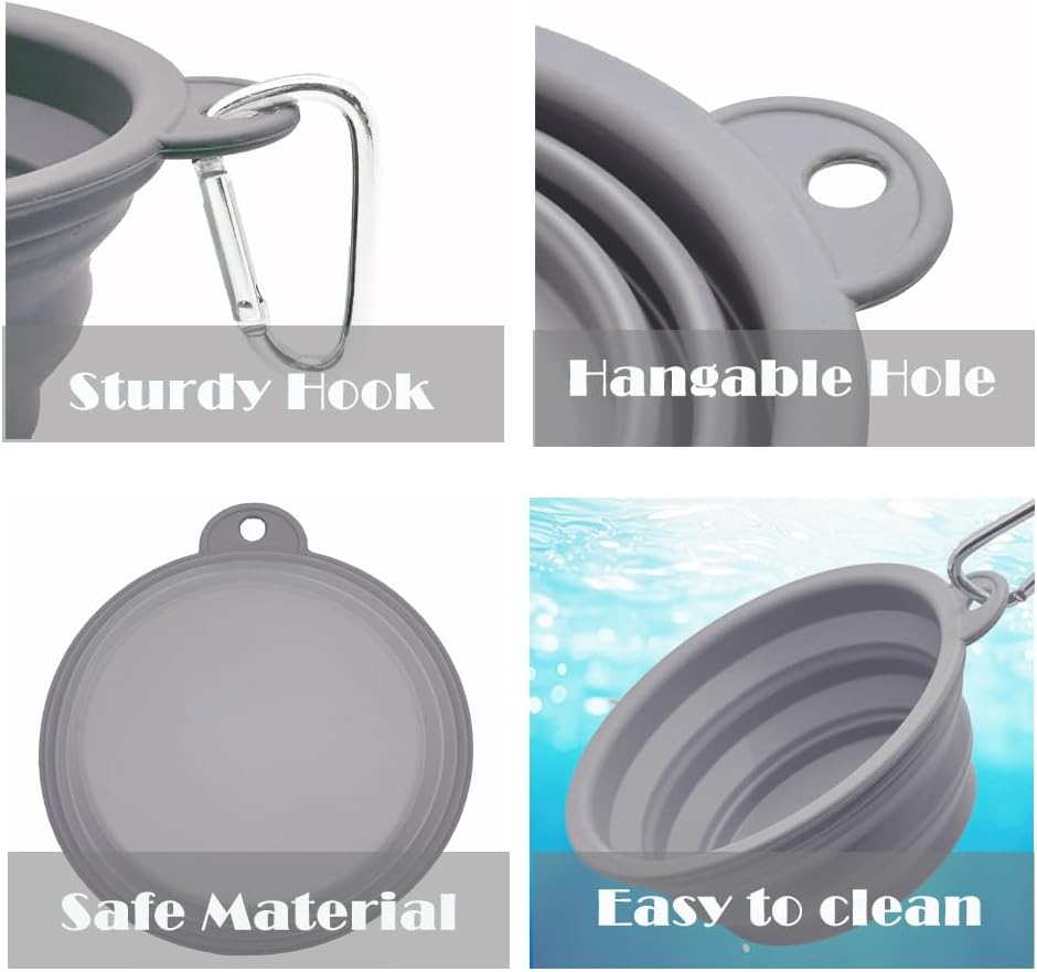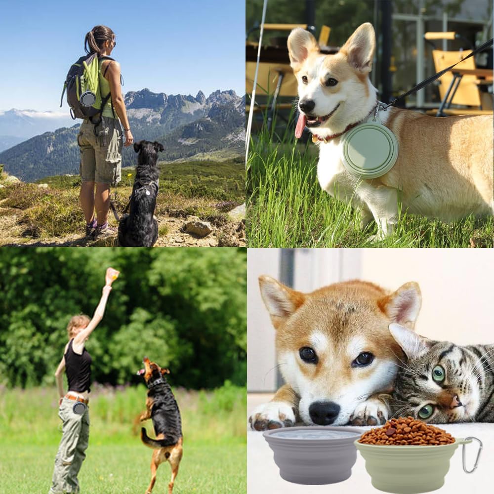 Easy to carry: This sturdy, foldable dog travel bowl includes climbing buckles that can be easily attached to backpacks, leashes, pet collars, leash, etc., making it ideal for pets traveling, camping, walking, running, and other outdoor activities.