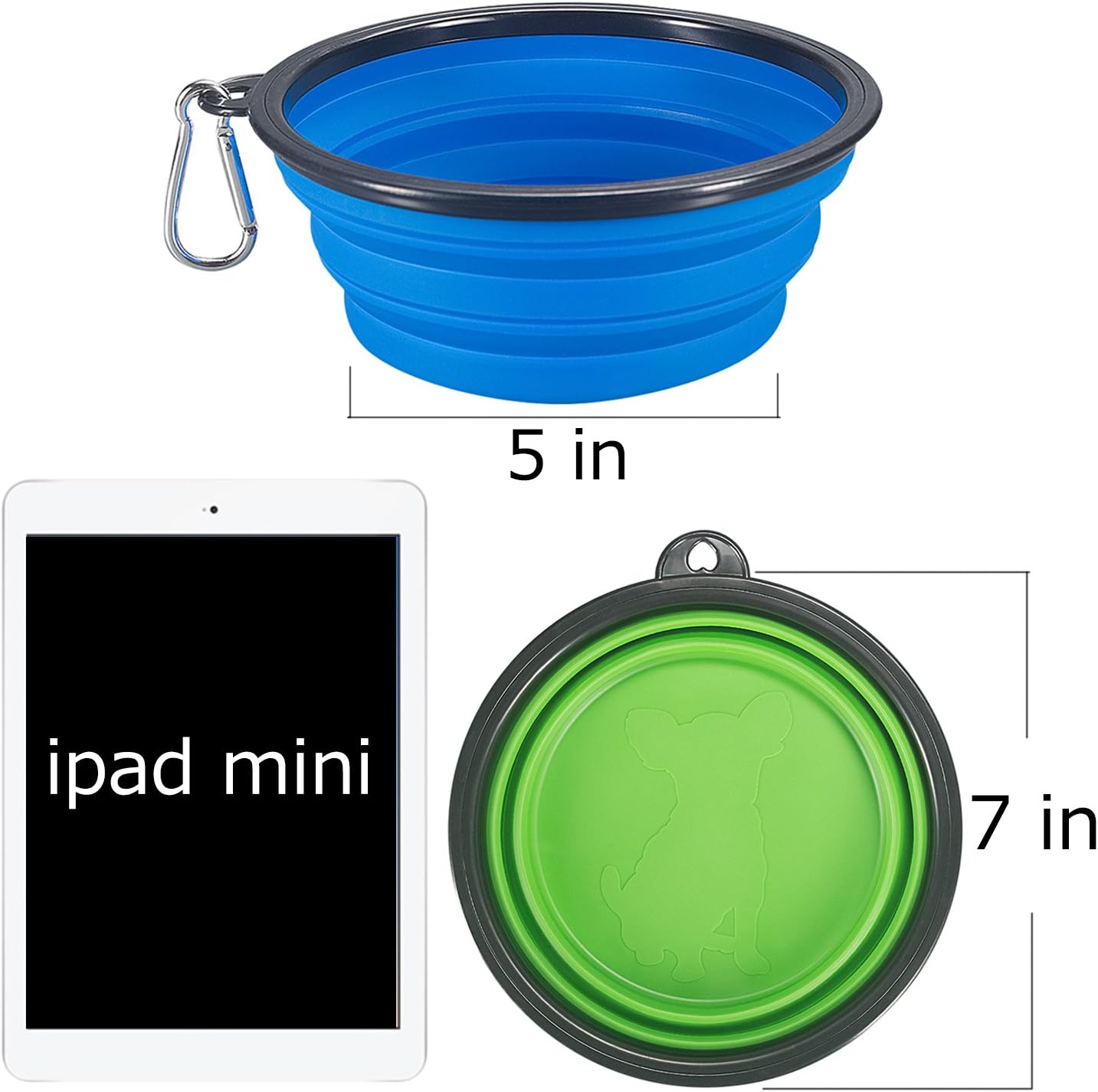 Comsun 2-Pack Extra Large Size Collapsible Dog Bowl, Foldable Expandable Cup Dish for Pet Cat Food Water Feeding Portable Travel Bowl Blue and Green