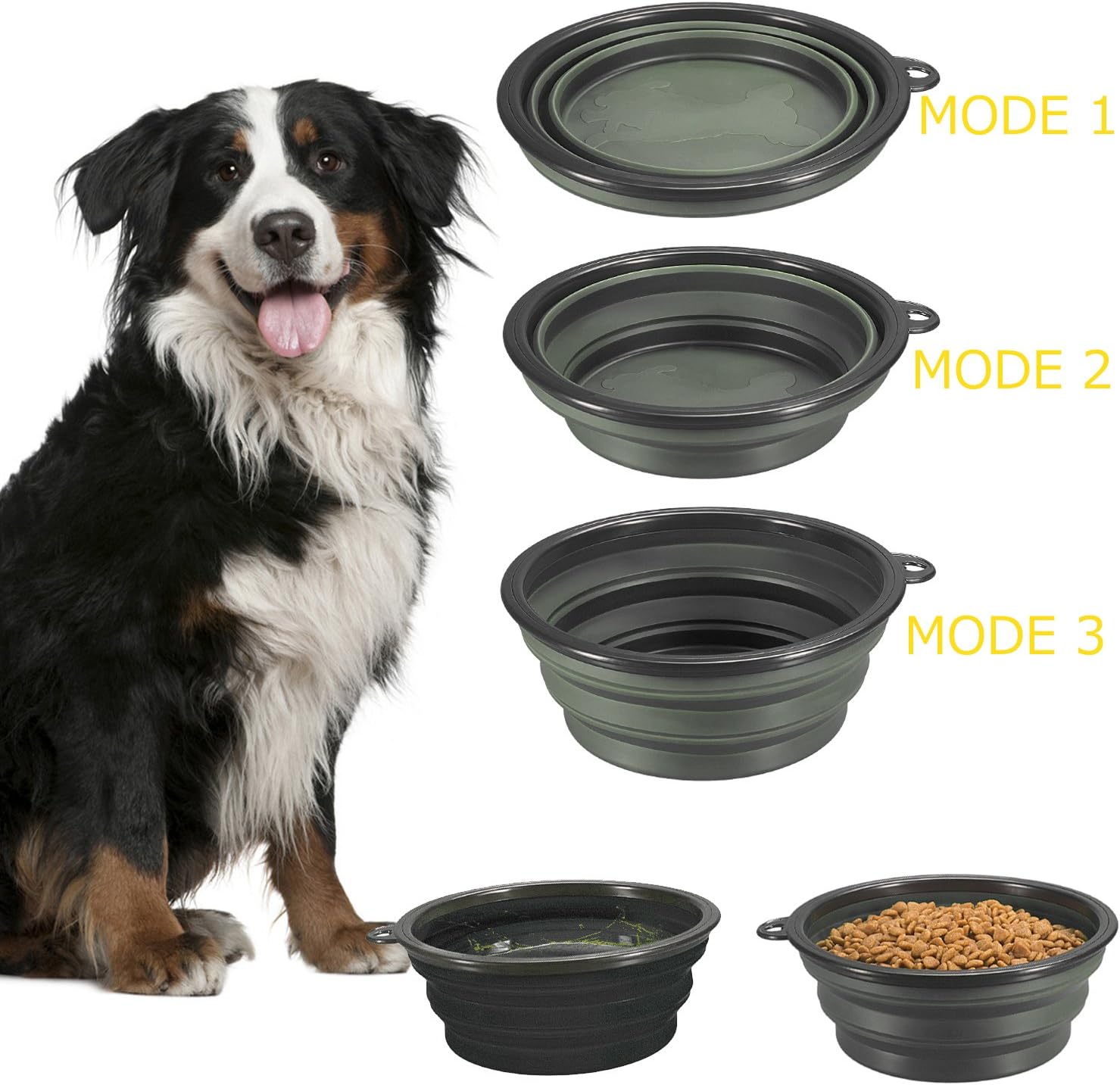 EASY FOR STORAGE AND TRANSPORTATION: Non-Slip collapsible dog bowl set great for travel dog bowl, pet travel bowl and cat food bowl – The Bowls include color-matching carabiners clip it or collapse it to your backpack, purse, dog travel crate, dog training leash or collapse flat for your pocket, stroller, glovebox