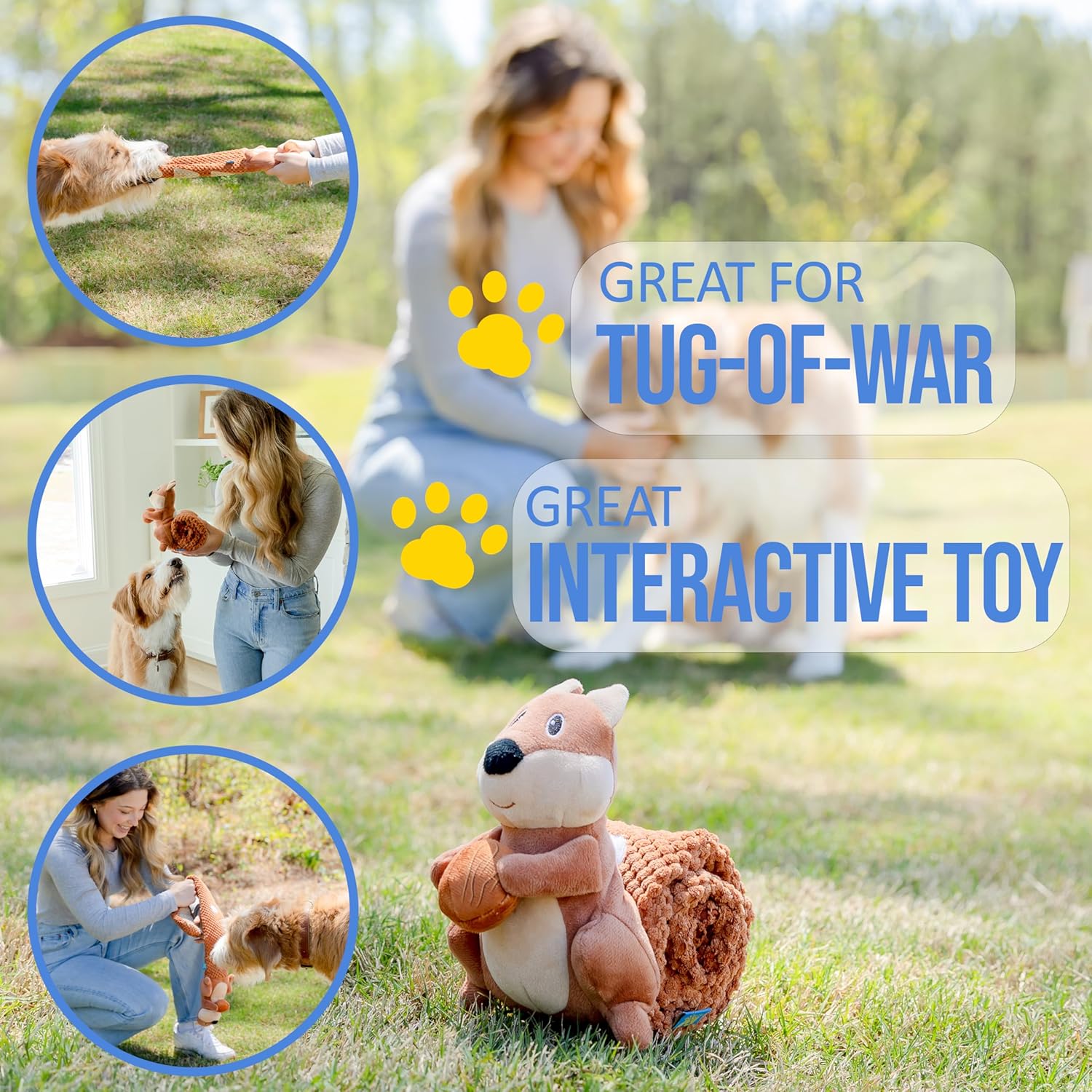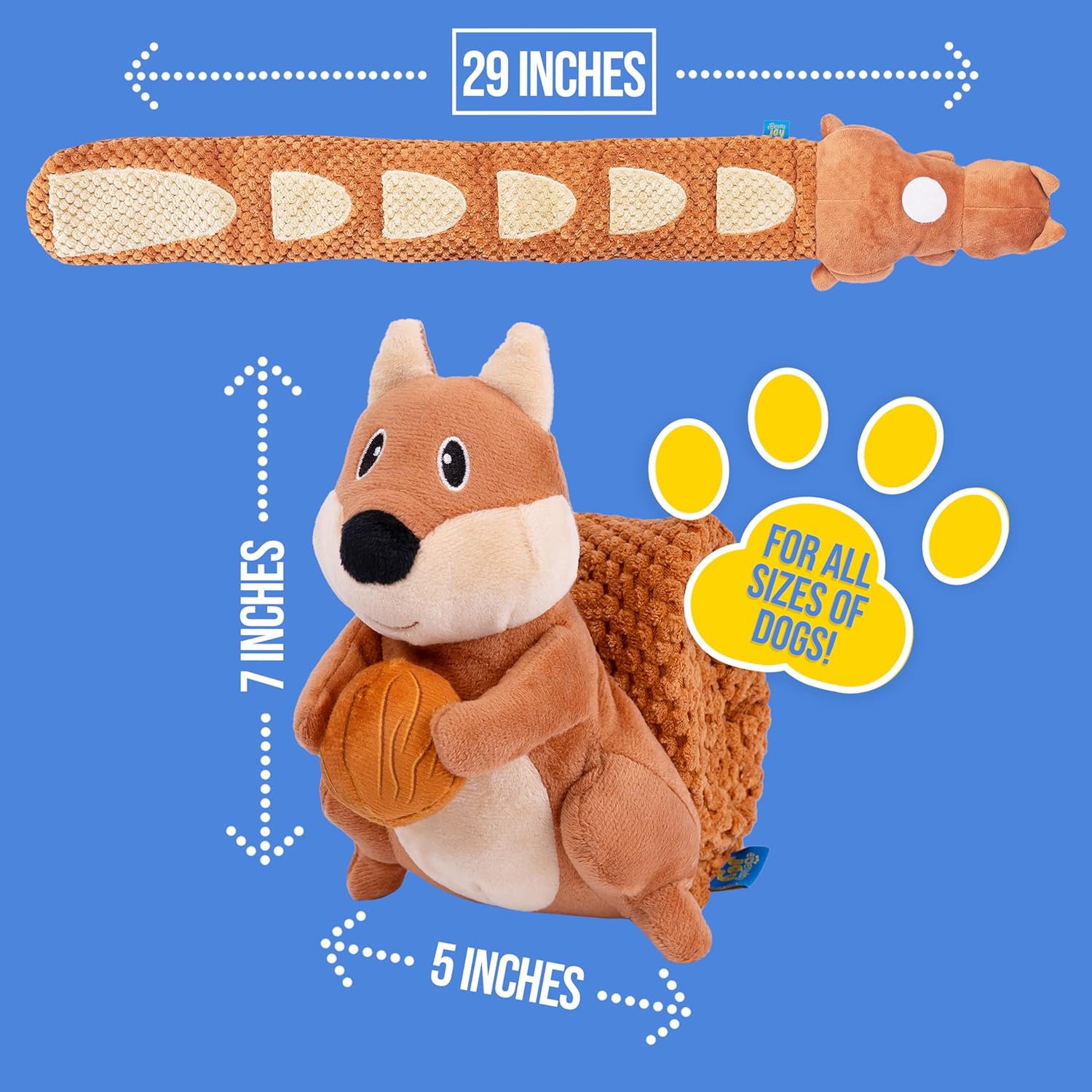Crinkle Dog Toy Plush Toy – Long Tug-of-War Squeaky Dog Toy Boredom Buster Toys with Snack Pockets – Durable Enrichment Mentally Stimulating Toys for Dogs Small, Medium, Large – Squirrel