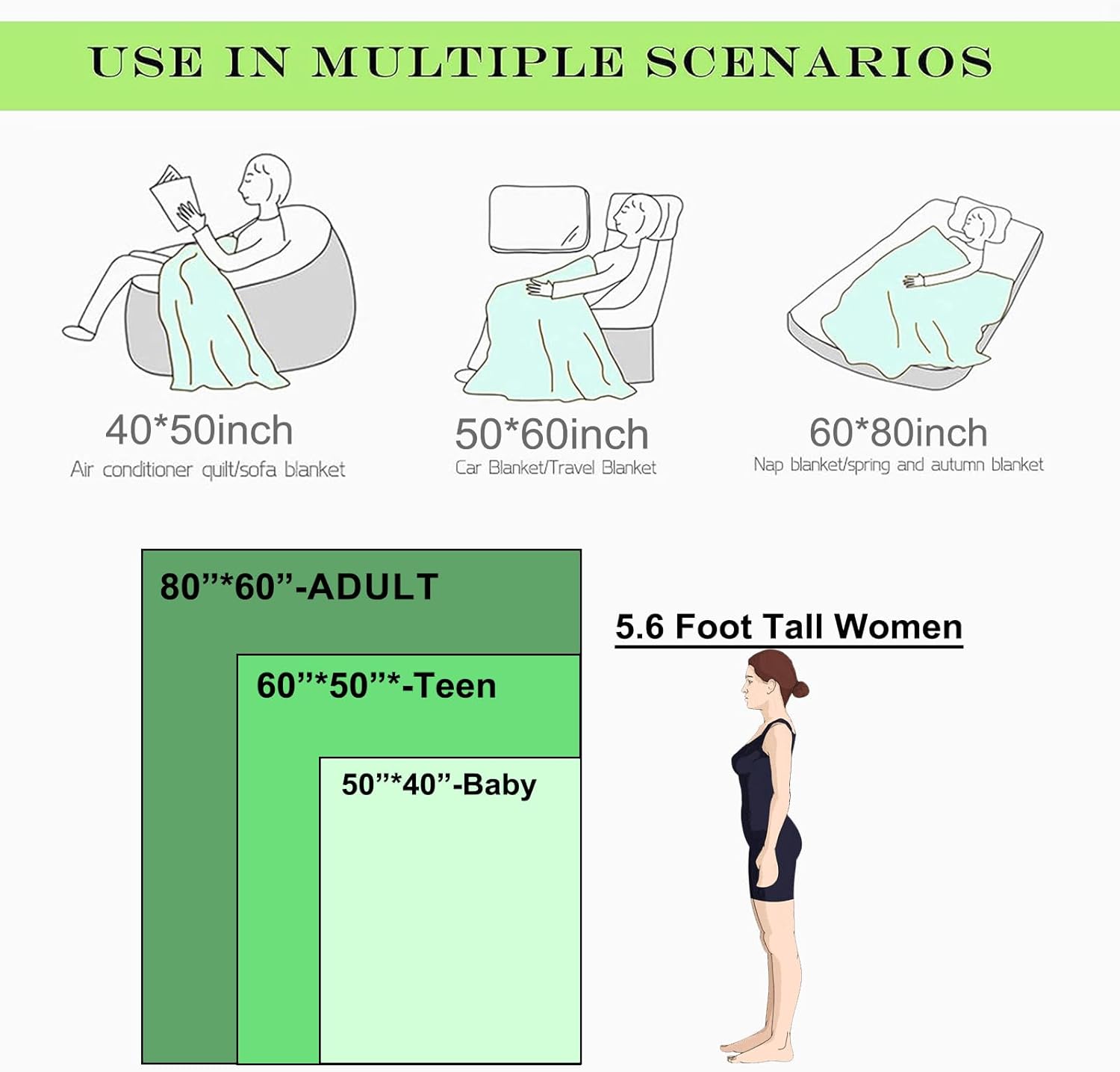 Assorted Sizes Available: Comes in 40×50 inches for personal use, 50×60 inches for larger coverage, and 60×80 inches for ample space, catering to various needs and preferences.