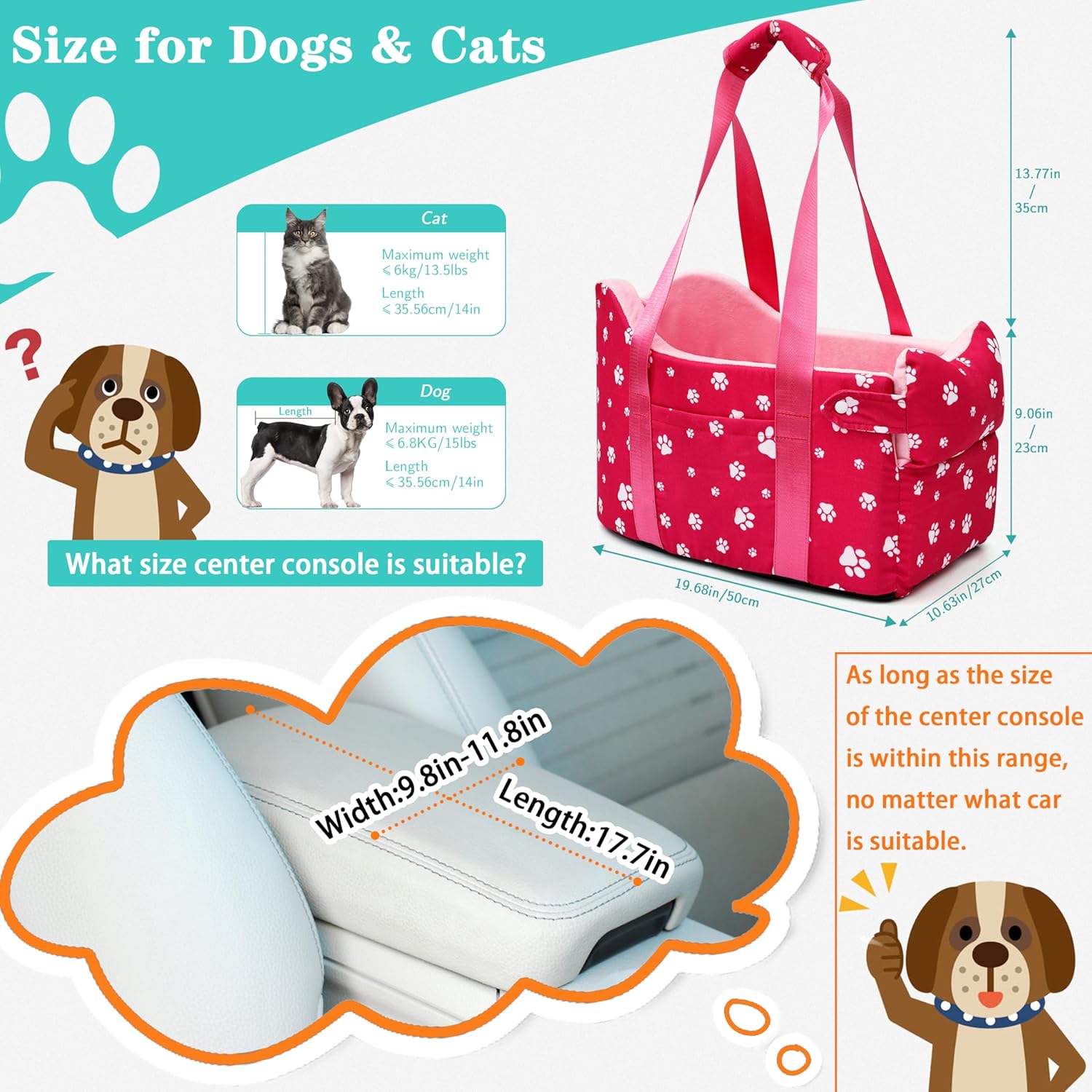 🔹 Important Sizing Reminder: Before purchasing, please measure both your center console and your dog’s length to ensure a proper and comfortable fit. This will help provide the best experience for your pup while traveling