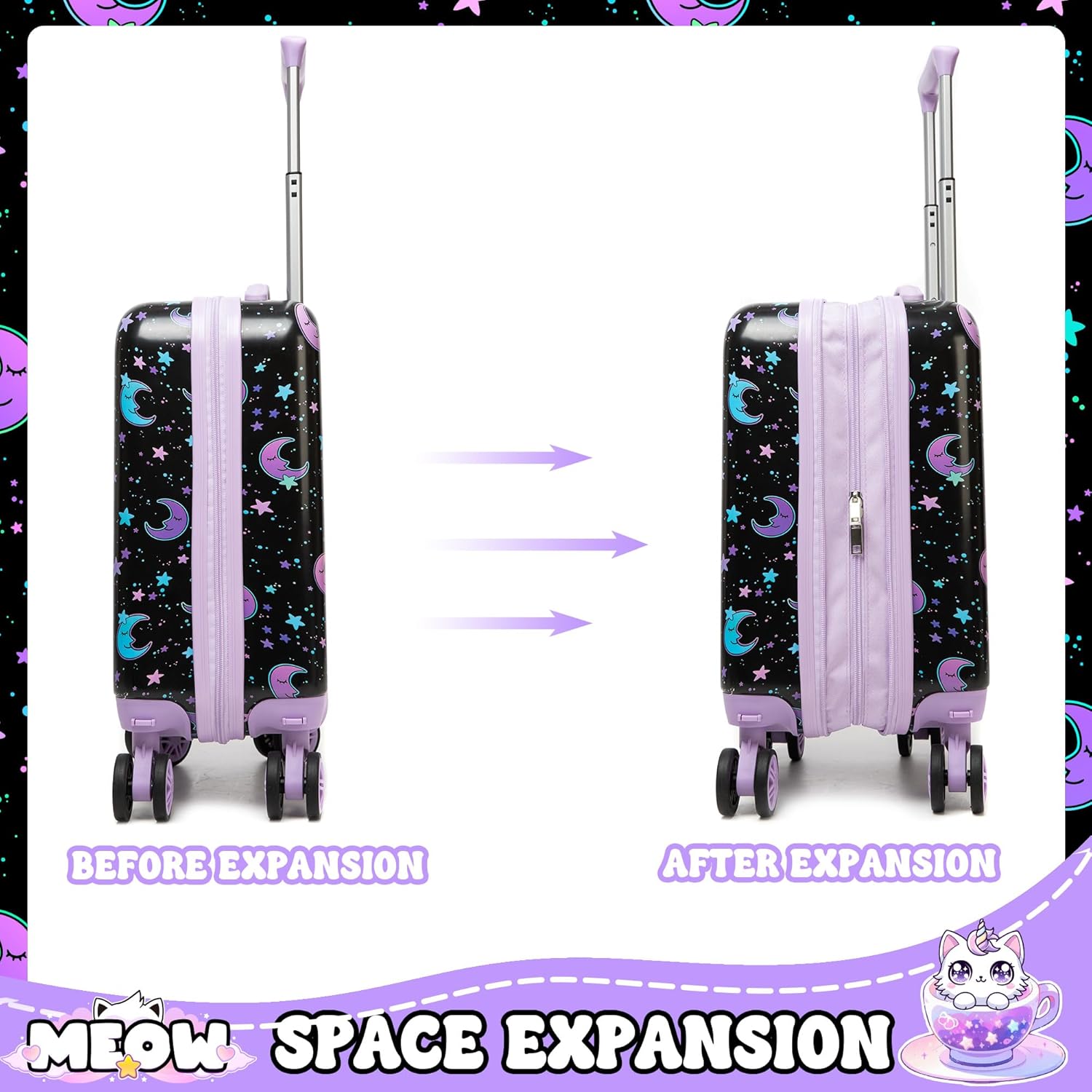 Durable and lightweight design: Made from high-quality materials, this luggage set is built to withstand the rigors of travel and easy for kids to carry. Carry On Suitcase: Cabin sized, 4 Wheels,
