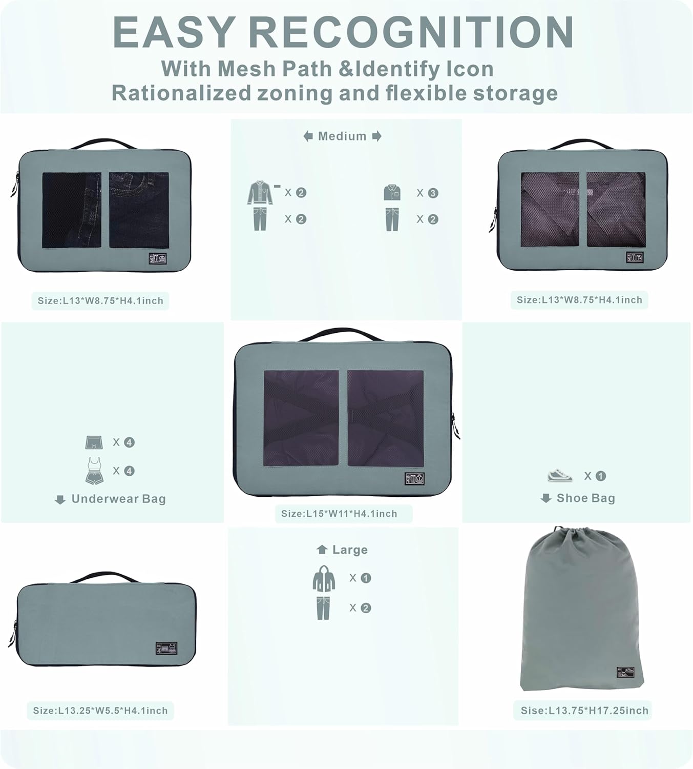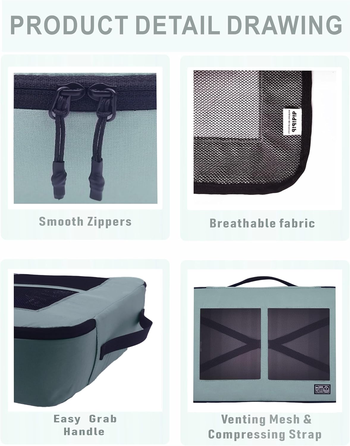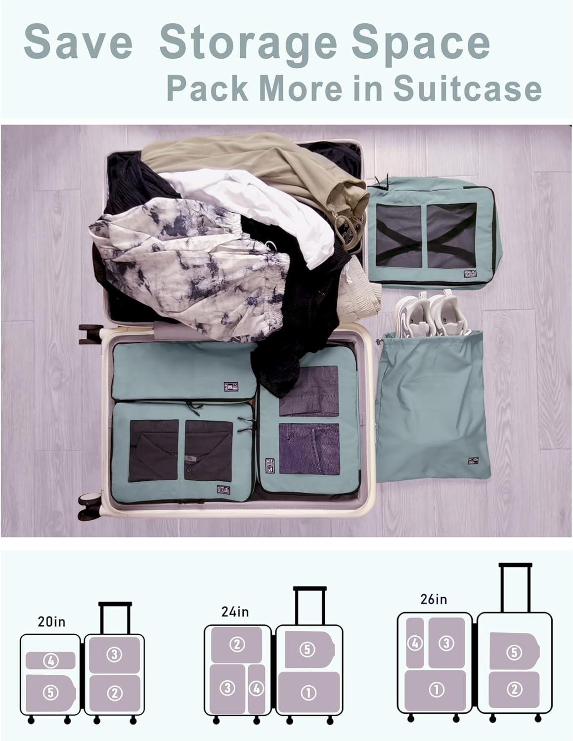 DDIDIBIB 5 Set Clothes Storage Travel Duffel Suitcase Cube Storage Bag Washable Machine(Green)