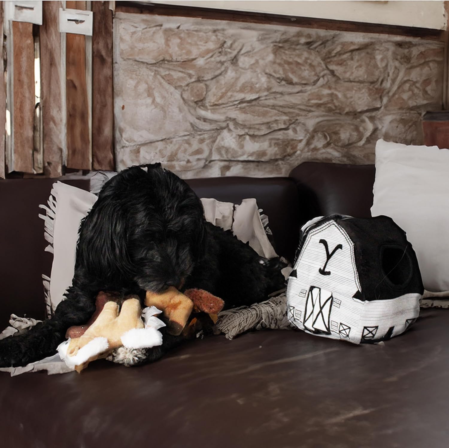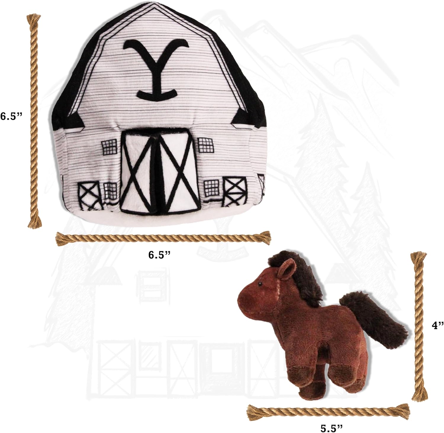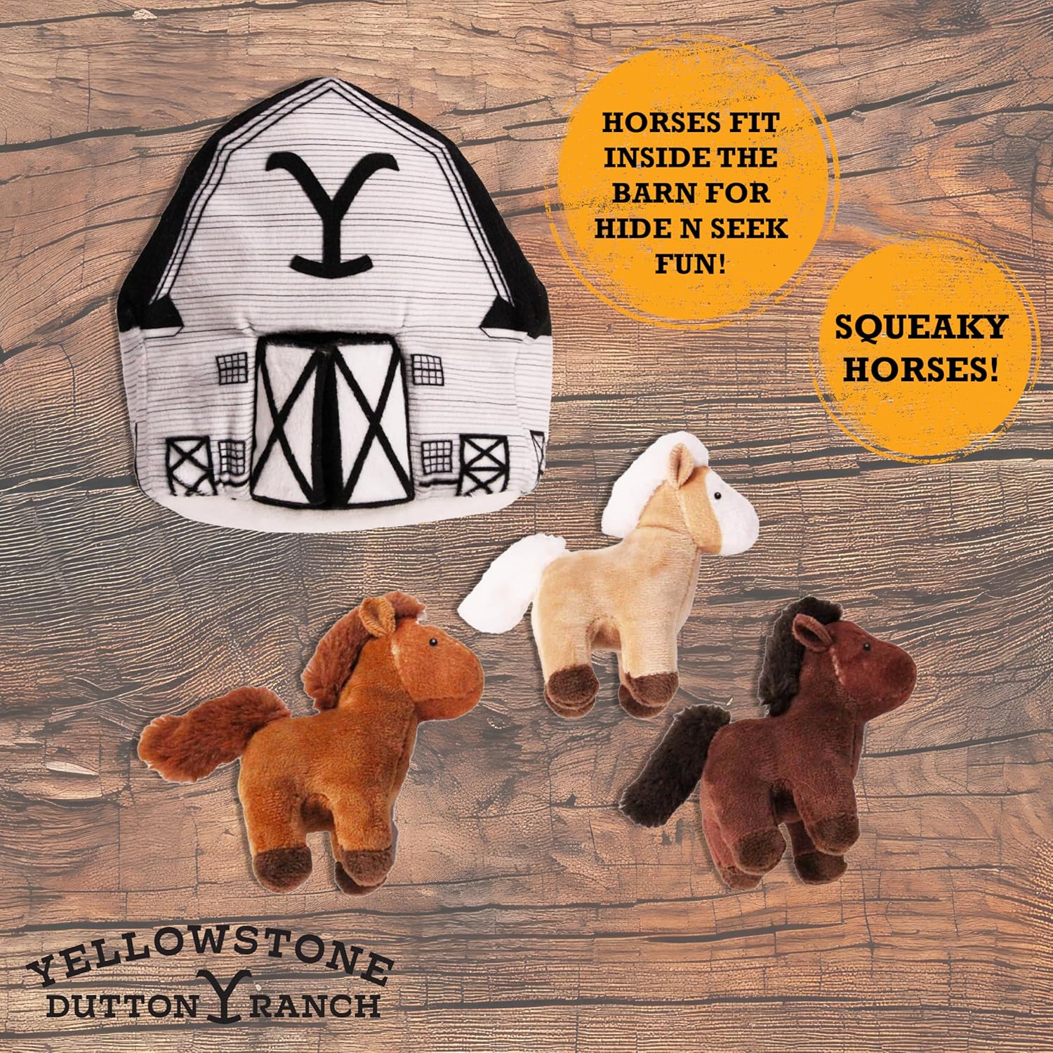 design LAB, Inc. Official Yellowstone Merchandise | Indoor Dog Toy Bundle Variety Gift Set | Yellowstone Nesting Barn with Horses | Squeaky Stuffed Animal Horse Set