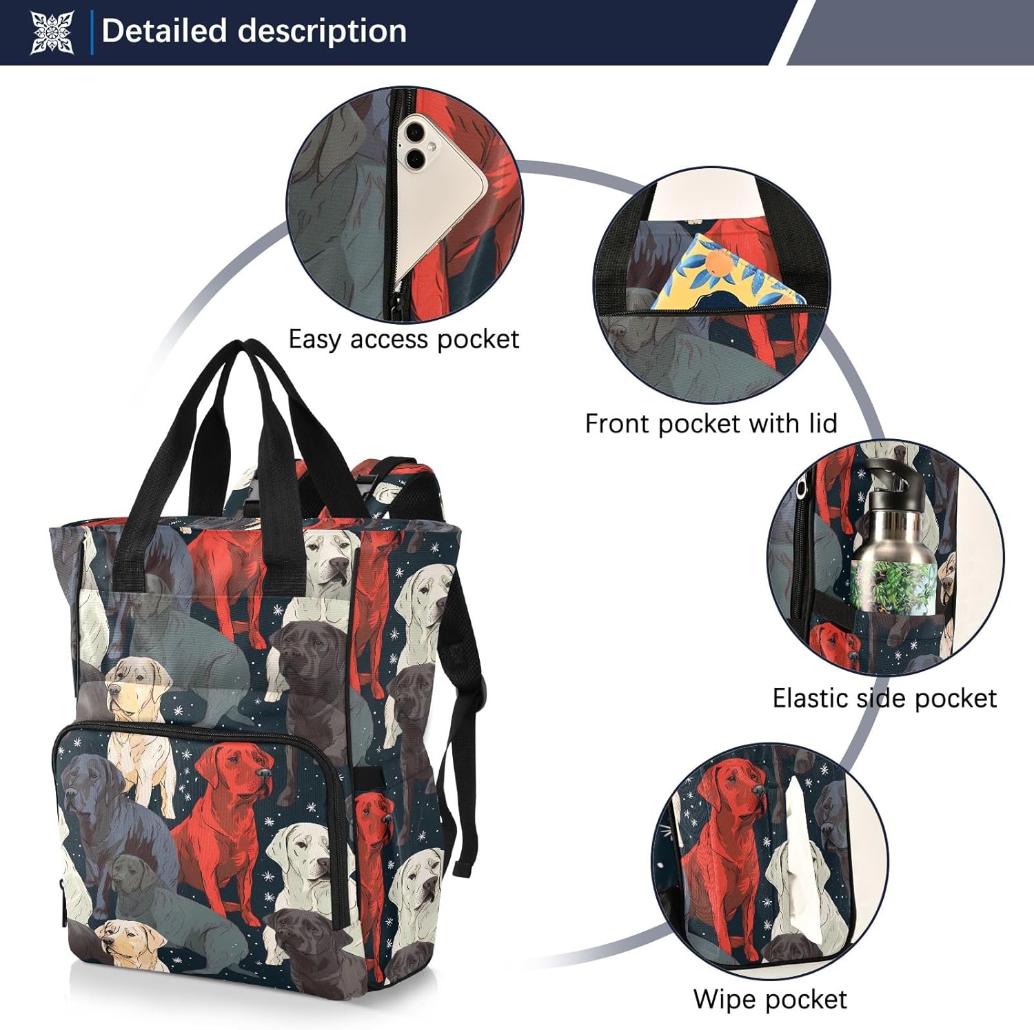 Diaper Bag Backpack Tote Multifunction Baby Nappy Changing Bags Dog Colorful Large with Stroller Straps Travel