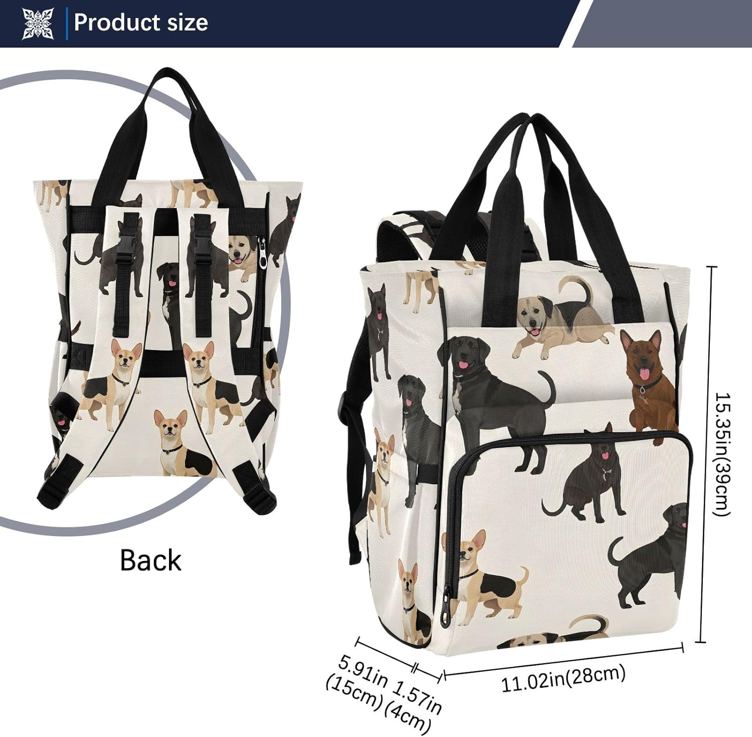 Diaper Bag Backpack Tote Multifunction Baby Nappy Changing Bags Many Dogs Large with Stroller Straps Travel