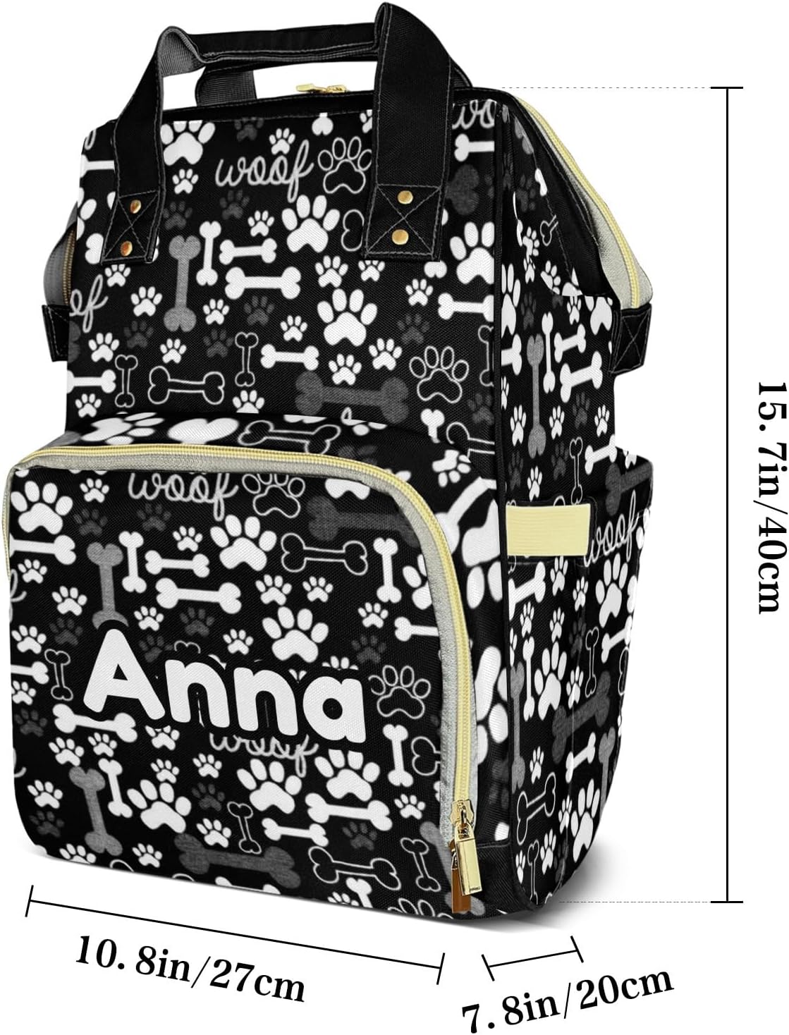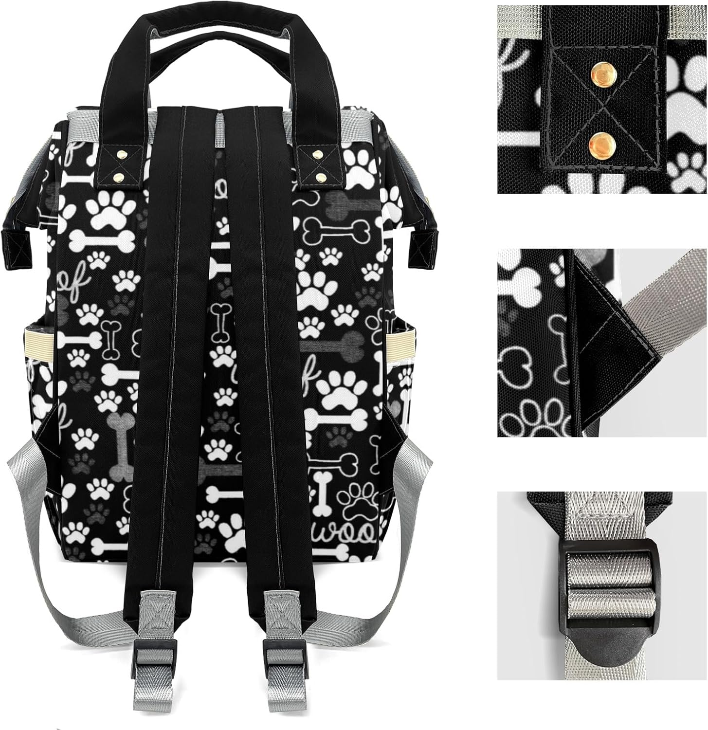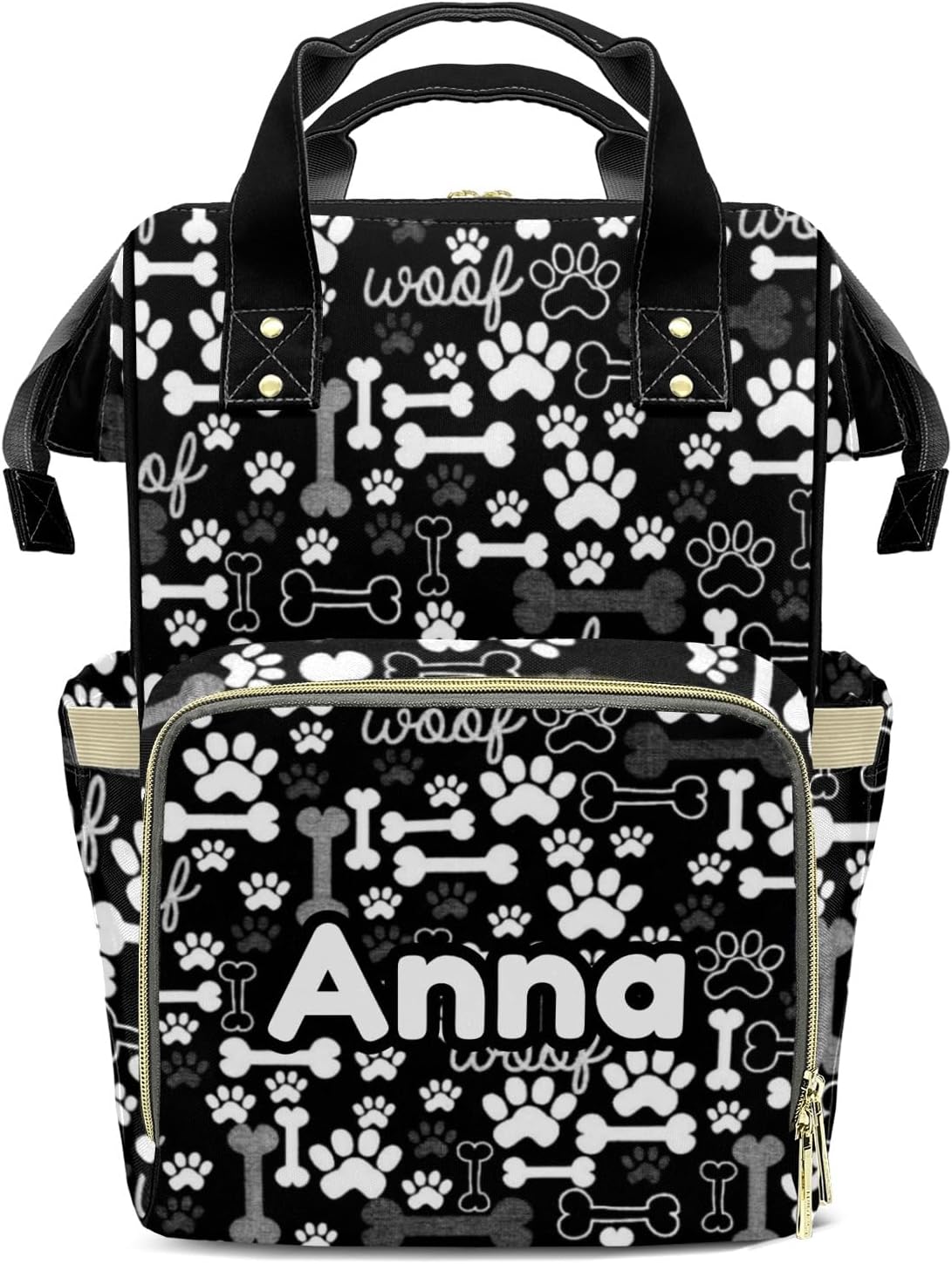 Diaper Bags Black Bone Dog Paw Tote Bags Backpack with Name Mommy Nursing Bags Gifts for Women Men