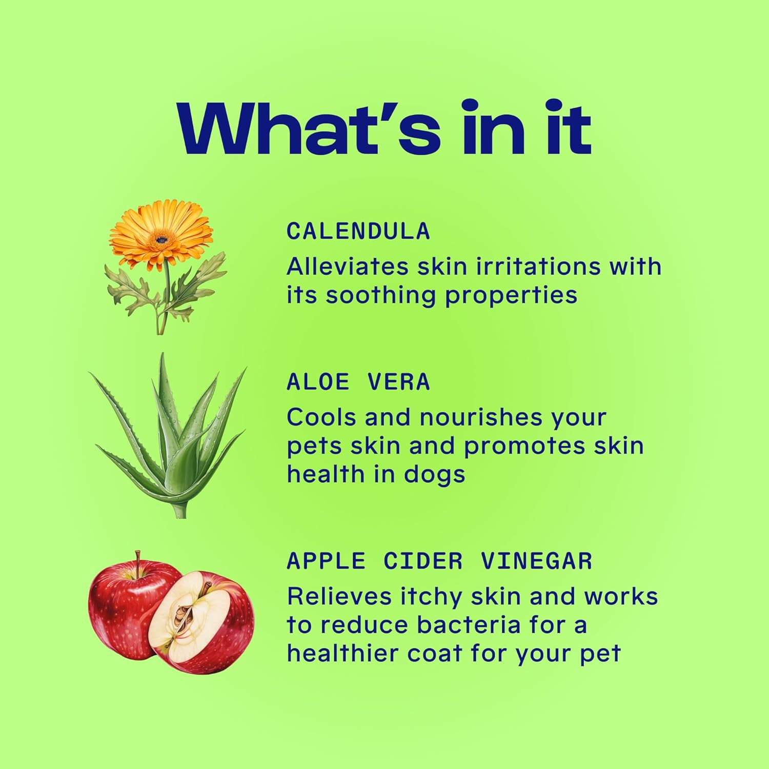 Soothes itchy skin: Organic calendula and aloe vera help soothe dog’s skin, relieve minor irritations and promote skin health in dogs.