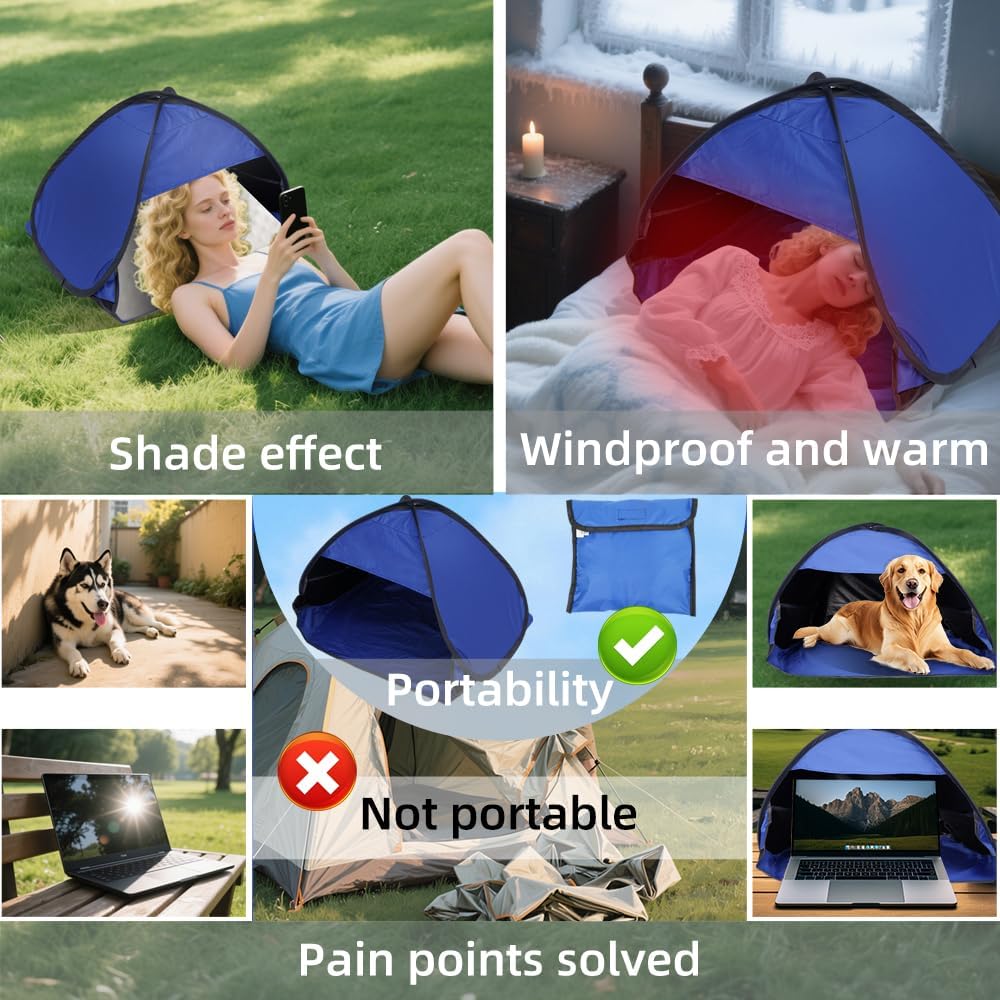 ●Breathable Sun Protection●Made from high-quality silver-coated polyester oxford fabric, this mini tent blocks harmful UV rays while allowing airflow. Ideal for sunbathing, relaxing at home, or working outdoors without glare or overheating.