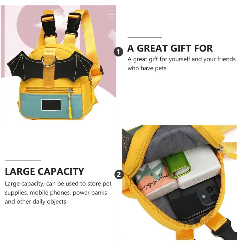 Comfortable & Cute: Pet backpack, Made of canvas material of durability and excellent dirt/abrasion resistance, ; Padded with soft cushion for comfortable fit for the dogs for safe and enjoyable memories; cute wing design and bright colors making it funny and cool outside when walk your dog