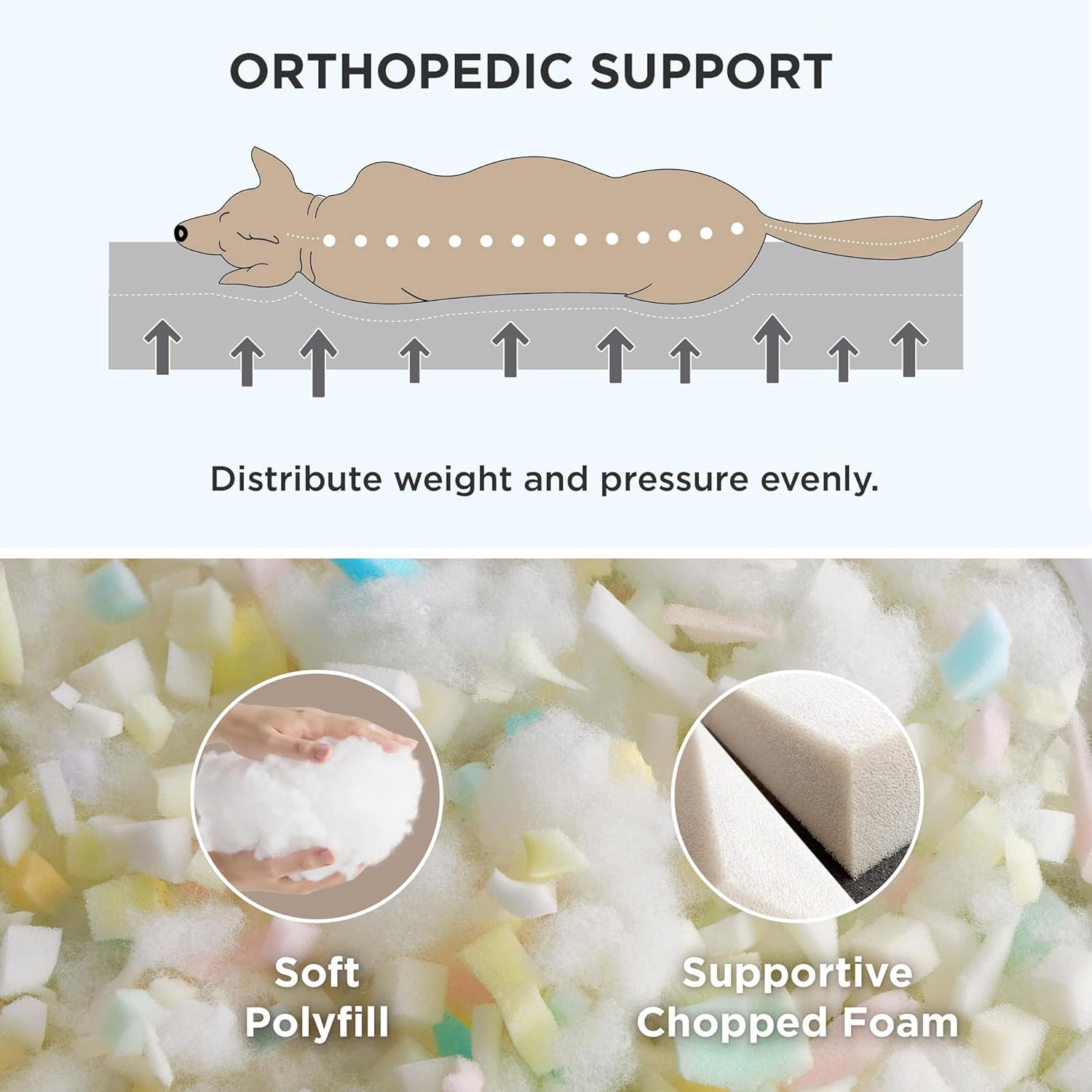 Easy Care: Thanks to the advanced fiber locking technology, reinforced stiches, durable backing and the use of a 3-4 inches high-quality elastic cotton filling material, Thick and high dense padding make the dog beds for long term use, Our pet bed can be fully washed by hand or washing machine and can remain shape after times wash. Let your pets enjoy a breathable, clean and hygienic bed.