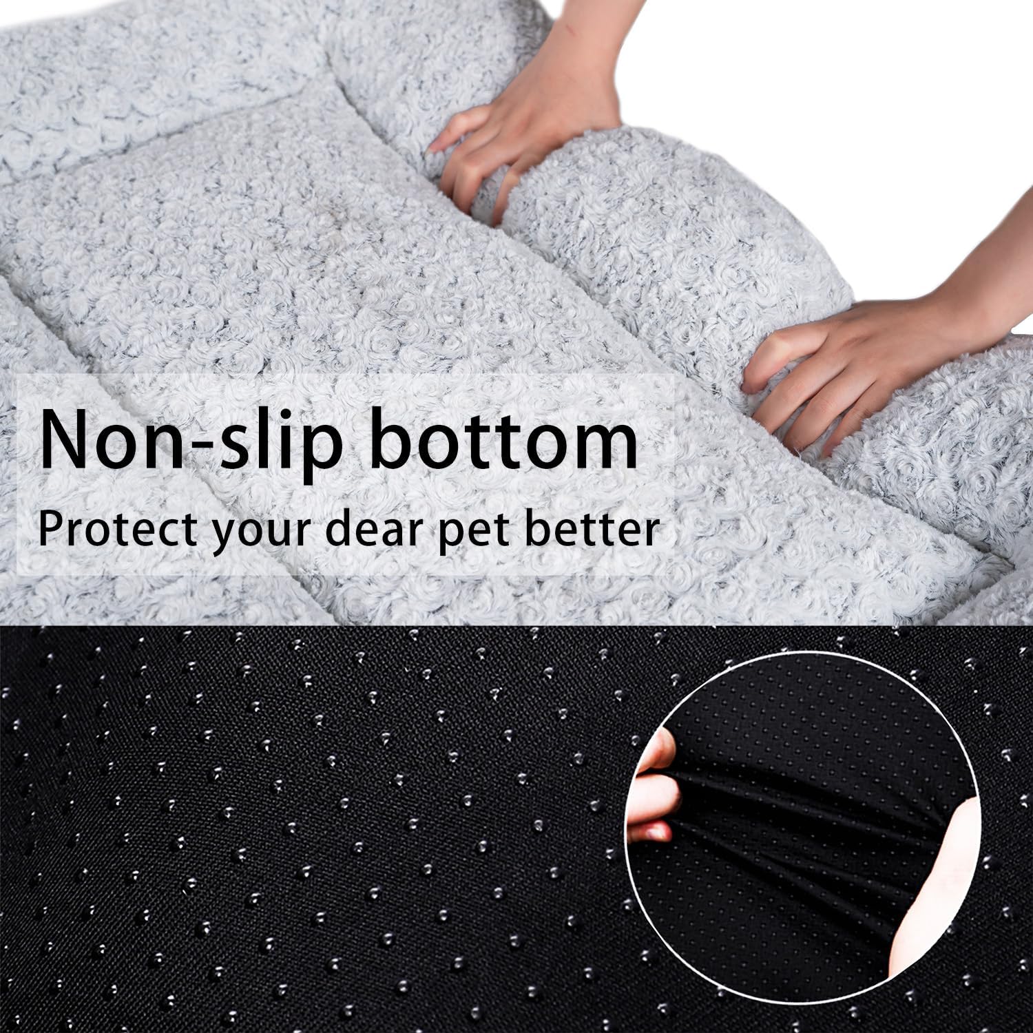 Dog Beds Crate Pad for Medium, Large Dogs, Deluxe Rose Plush Cat Sleeping Mats, Fits Crate Kennel Cage, Anti-Slip Pets Pillow, Washable Ultra Soft Fluffy Dog Bed for Crate (35″x23″Grey)