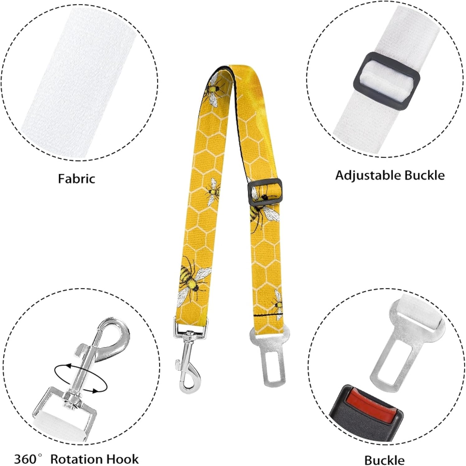 Dog Car Harness,Cute Bee Seat Belt Different Pattern Designs Safer Drving Easy Travel Dog Harness for car Big Bee