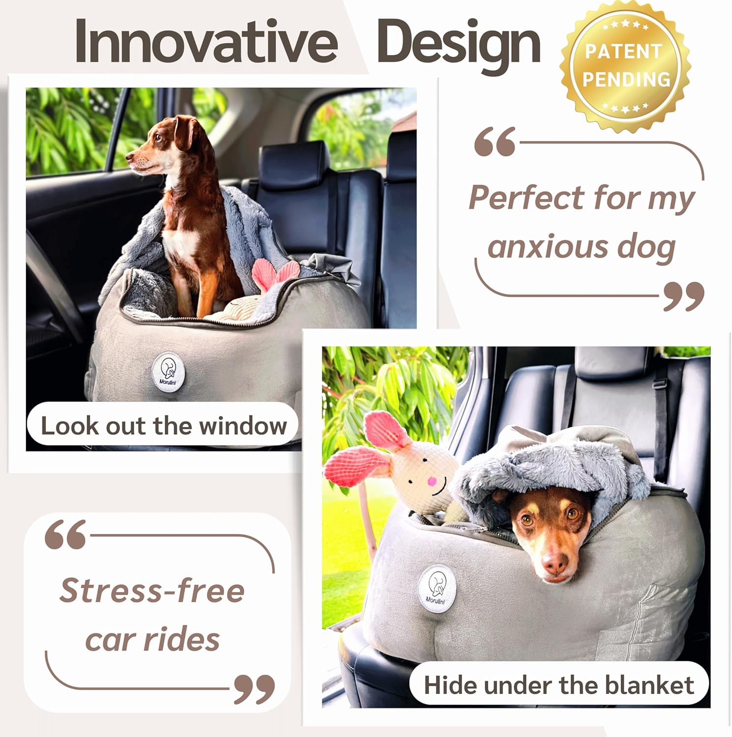 🌟 PATENT-PENDING DESIGN — NOT JUST A DOG CAR SEAT, A TRAVEL GAME-CHANGER. Not all dogs enjoy rides, but this research-based booster seat is here to change that. Its patent-pending structure features a zipper-removable blanket that creates a cozy, burrowed space—offering warmth, security, and a sense of protection. Perfect for anxious pups, it helps reduce stress and motion sickness by giving them control: they can slip under the blanket or come out on their own, without shifting the cover or distracting the driver.