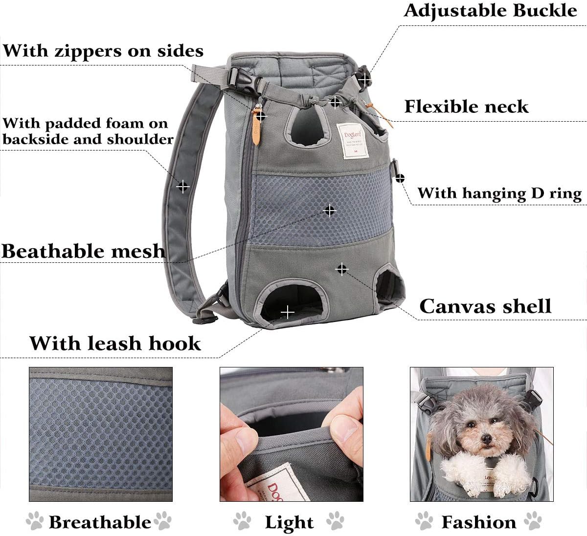 Made from breathable mesh and canvas material, durable and soft. Legs-out and tail-out design allows maximum air circulation, making the pet feel cool and comfortable.