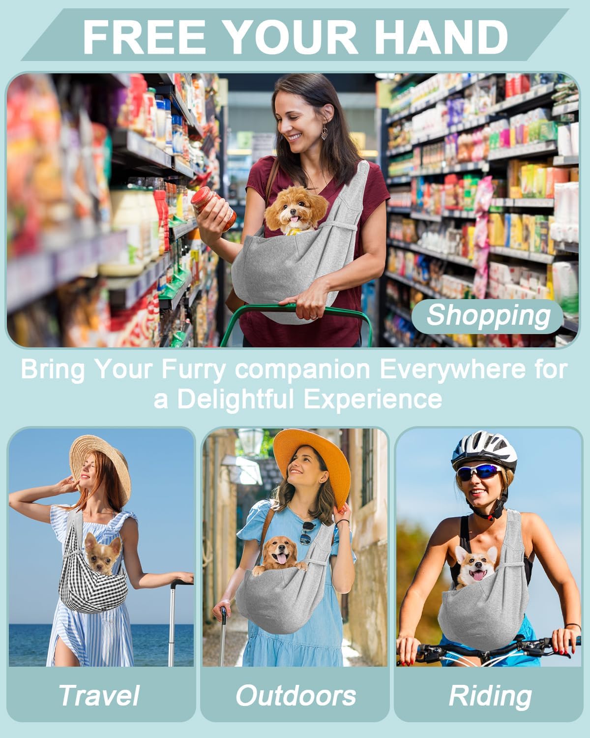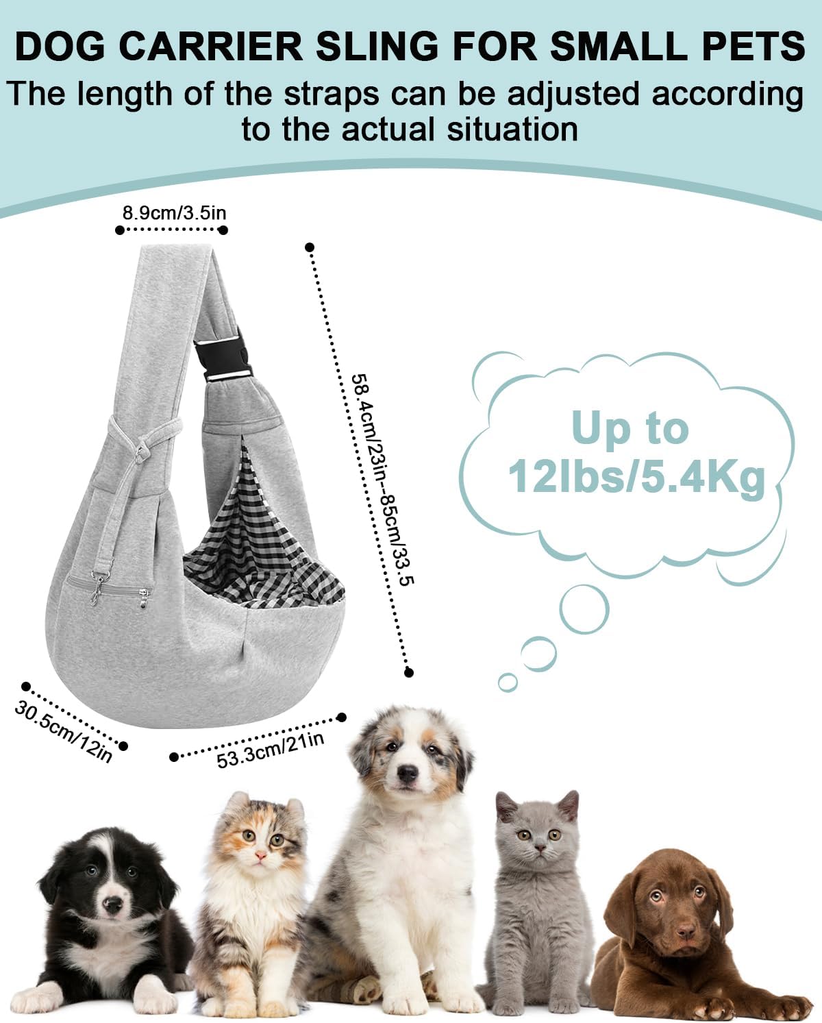 Dog Carrier Sling for Small Dogs and Cats(0 to 12 lbs), Puppy Sling Carrier with Adjustable Strap, Travel Safety Harness, Hands-Free Pet Carring Holder Travel Bag for Outdoor, Gray