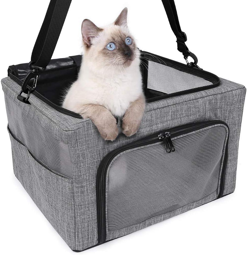 Dog Cat Car Seat, Collapsible Cat Puppy Car Carrier with Metal Frame, Travel Bag for Small Medium Pet up to 15 lbs