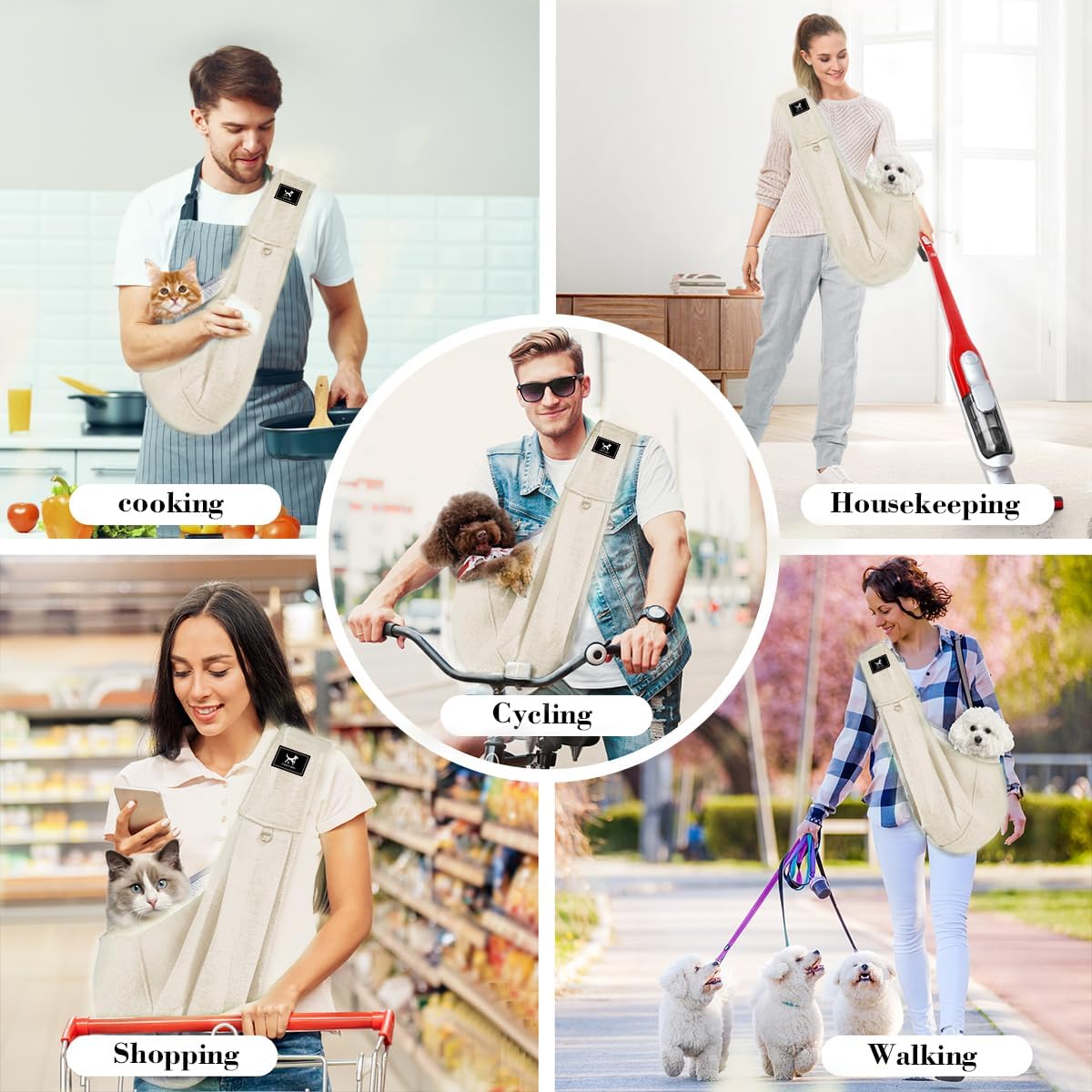 This pet sling carrier for small dog and cat ideal for walks, vet trips, or errands. Keep your Small & Medium pet close, safe, and comfy—whether indoors or on the go.