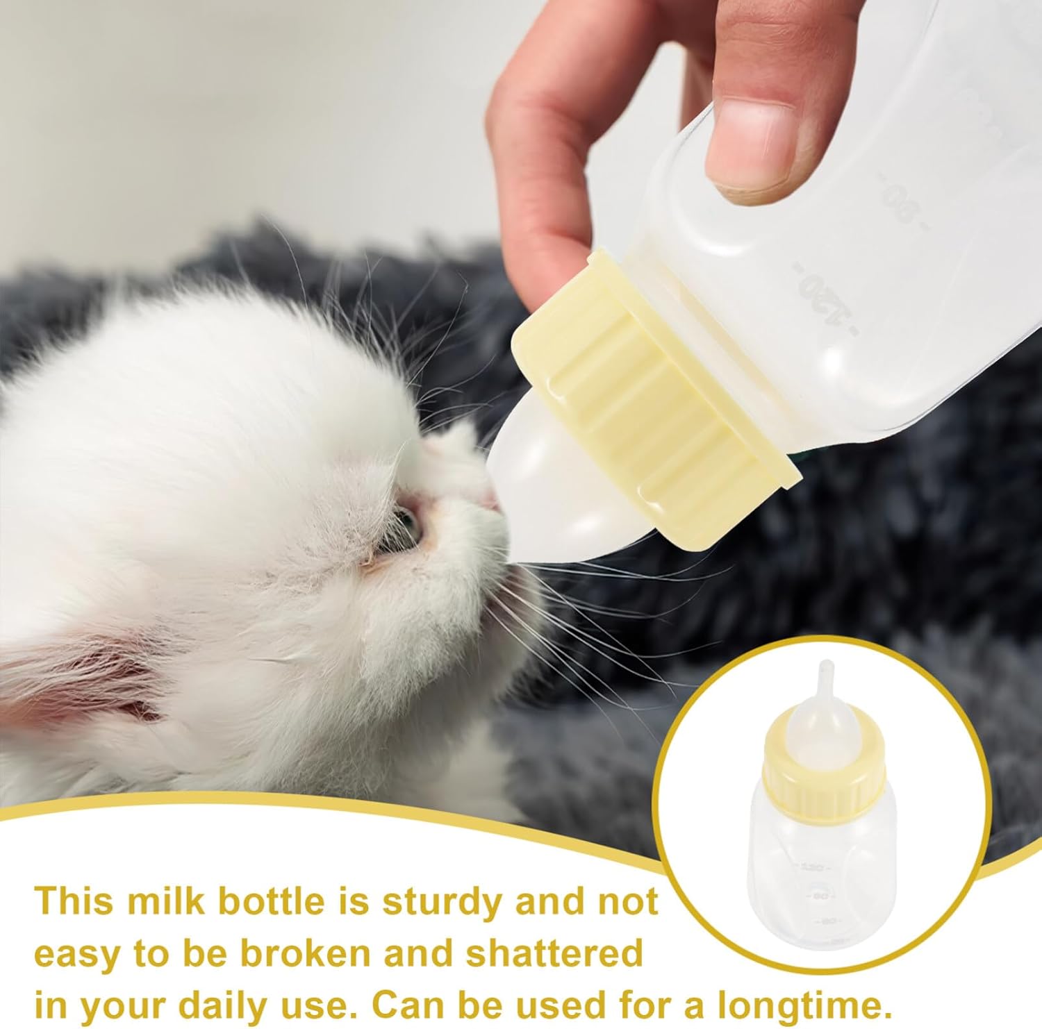 Are you looking for a small pet feeding milk bottle set? This milk bottle is manufactured with good material for durable and use. and proper capacity design makes it more practical and portable for feeding your newborn pet. The bottle is clear, which allows you to feed your pets quickly and control the feeding quantity.