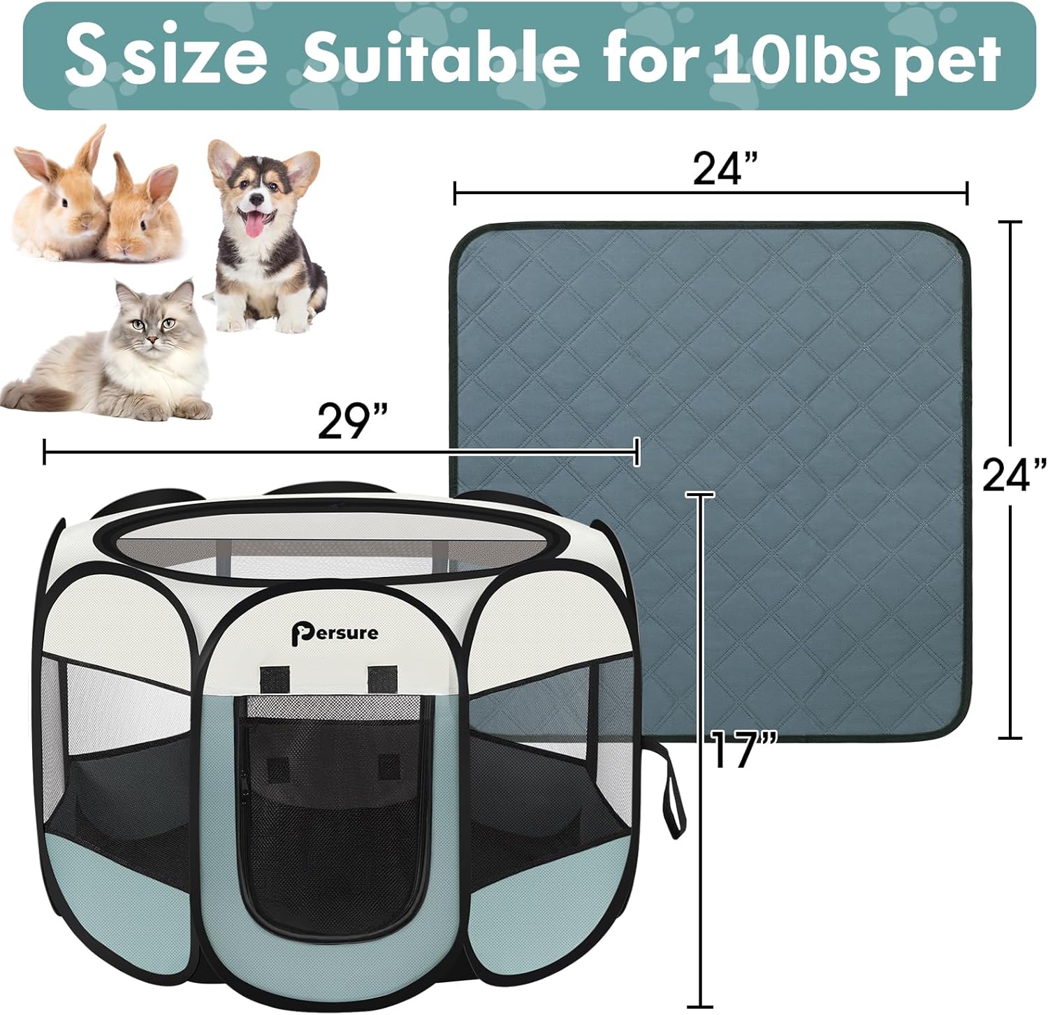 Dog Cat Playpen Indoor Outdoor for Puppy Pet Dogs Cat Travel and Recovery After Surgery, Dog Enclosure Tent Crates Cage, Portable Pop Up Dogs Kennel with Carrying Case(Grey, Small with Pad)