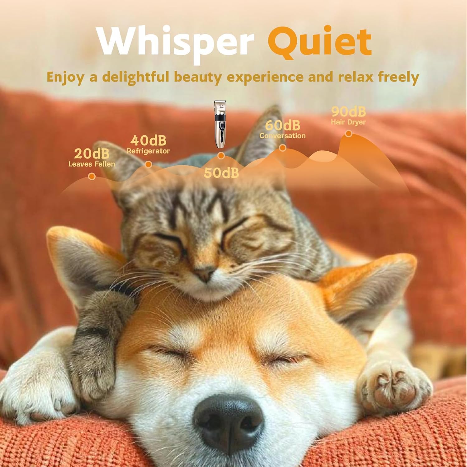 Dog Clippers for Grooming, Low Noise, Electric Quiet, Adjustable Clipper Comb for Dog Grooming Kit, Pet Hair Thick Coats and Paw Trimmer