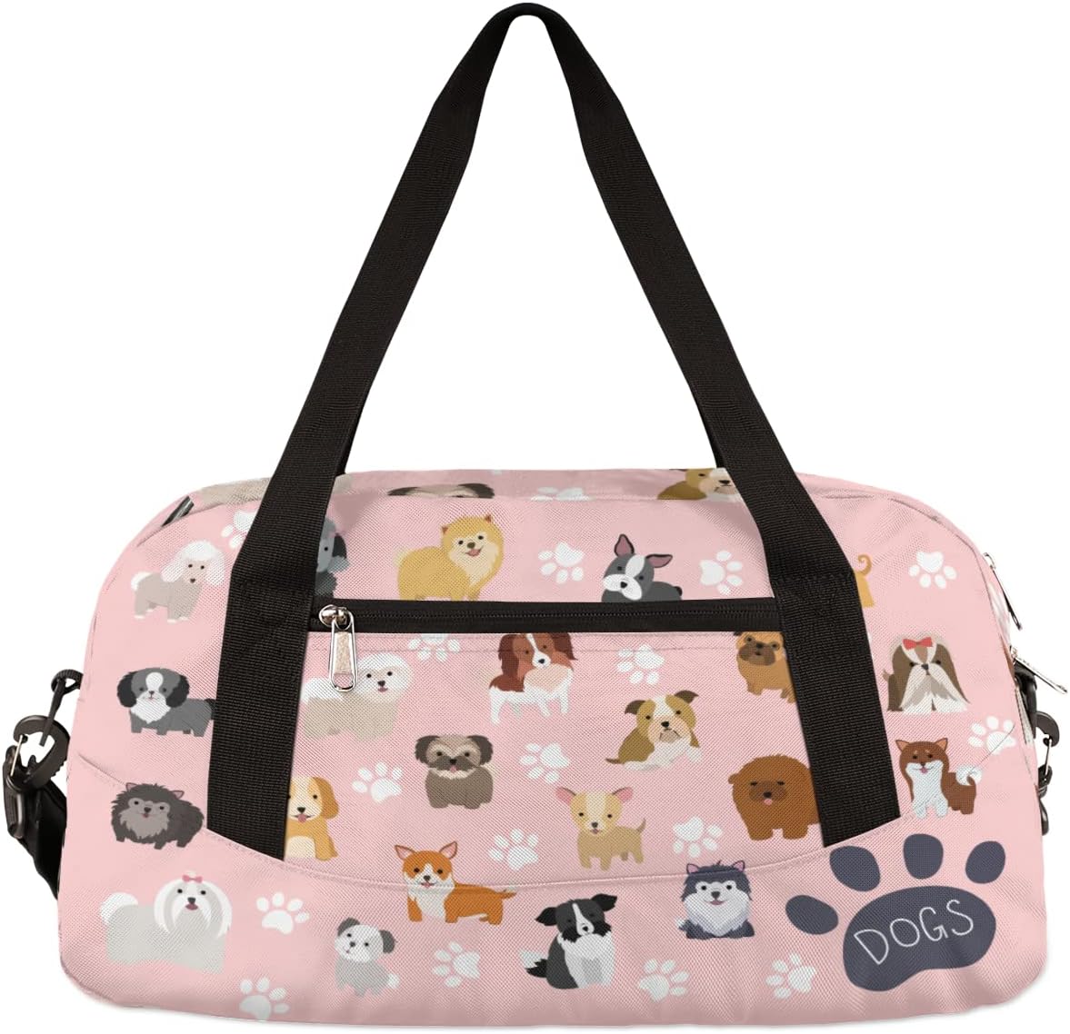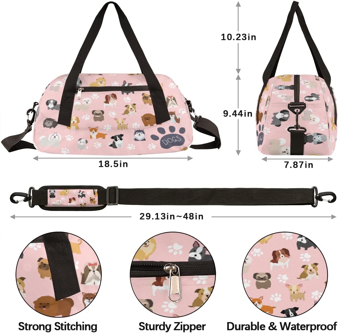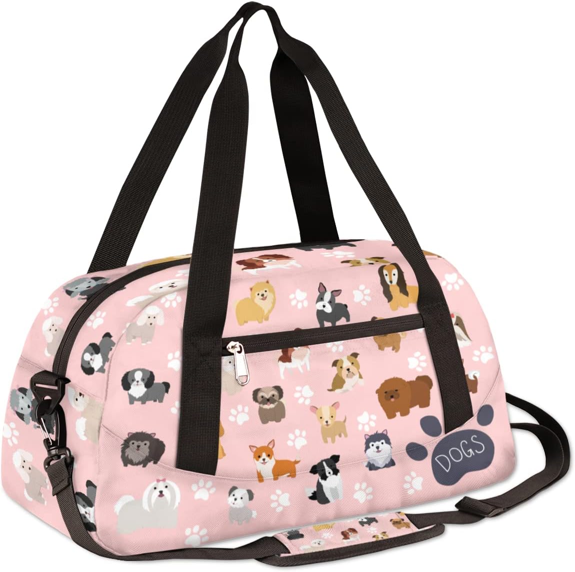 Dog Duffle Bag for Girls, Cute Kids Overnight Bags Pink Girls Dance Bag Lightweight Water Resistant Foldable Dog Paws Sports Gym Bag Weekender Overnight Sleepover Carry On Travel Bag