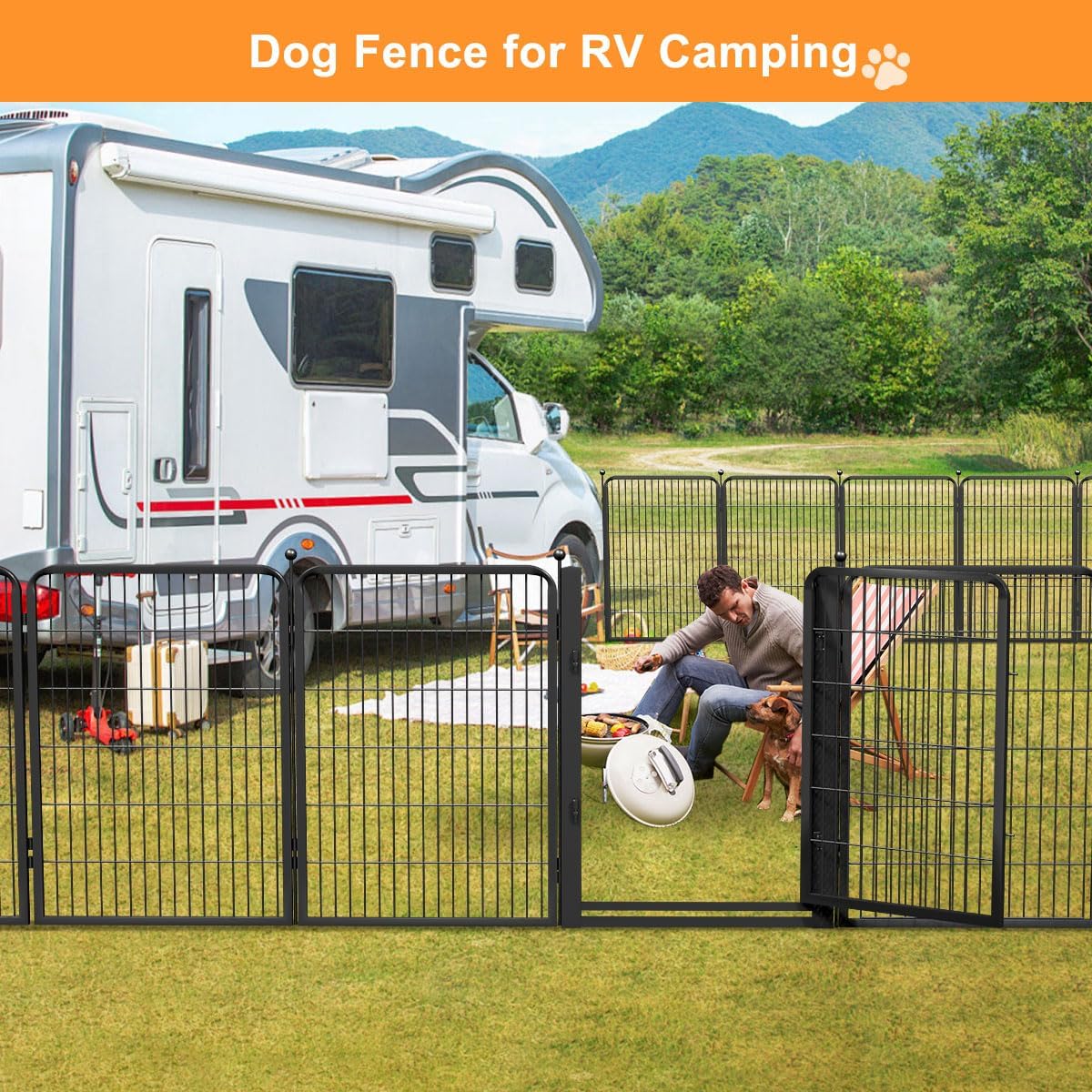 【Widely Used】:This portable dog fence for rv camping ensure that you can fully enjoy your outdoor time,it can effectively prevents your dog from running around. When you out of home,the puppy playpen help you keep your dogs stay comfortably inside to keep the room clean.It can also works as decorative garden fences,enhancing your yard’s aesthetics;