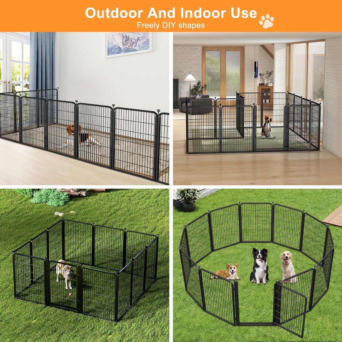 【Sturdy &Durable】:This dog fence outdoor for yard is constructed from heavy-duty metal with a rust-resistant coating,ensuring long-lasting durability even with outdoor use.The dog play pen indoors feature protective pads to prevent floor scratches;