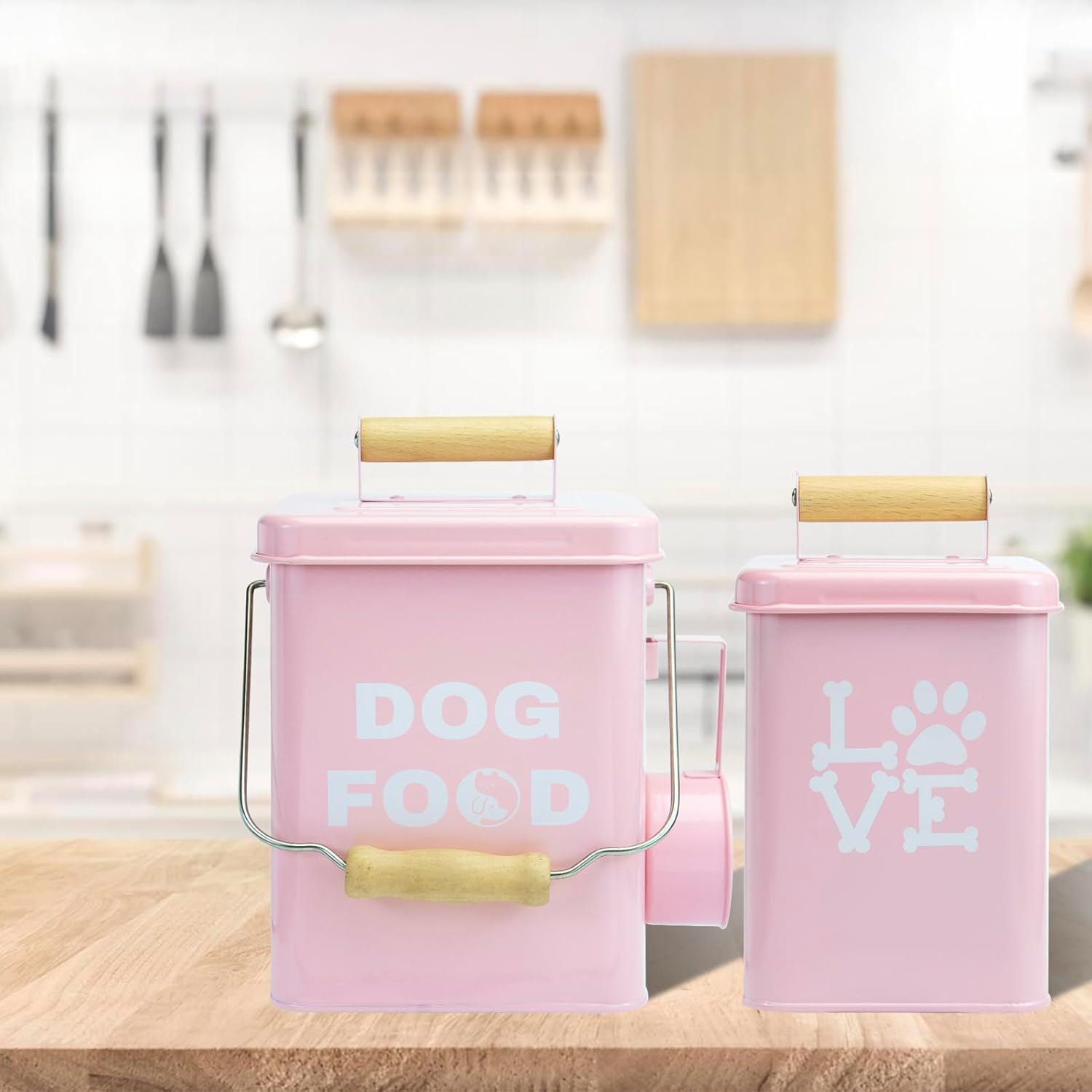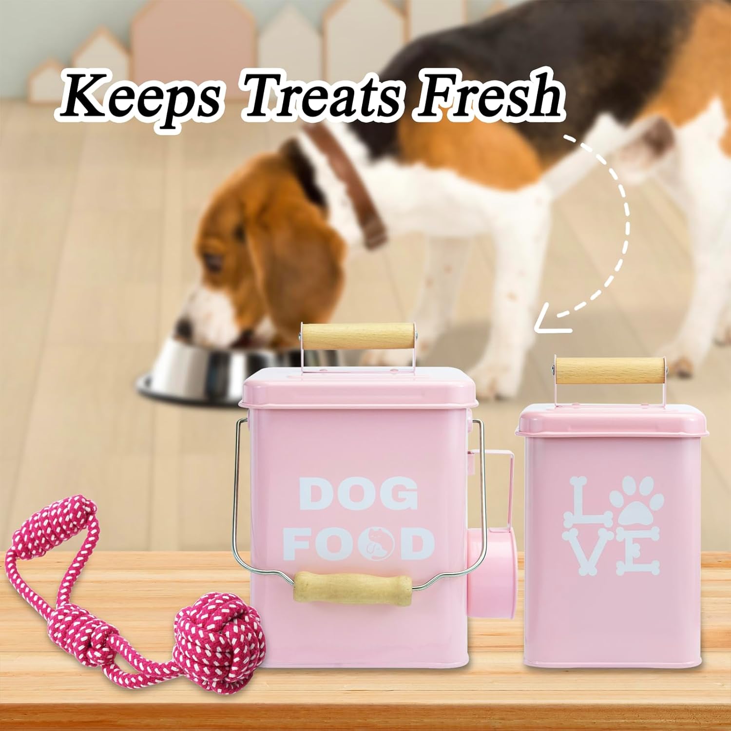 Dog Food Container Airtight Set 5-7 lb(25 Cup) Capacity with Scoop and Toy – Farmhouse Dog Food Storage for Kitchen Counter, Pink Storage Bin for Pet Food with Handle, Great Gift for Pet Owners