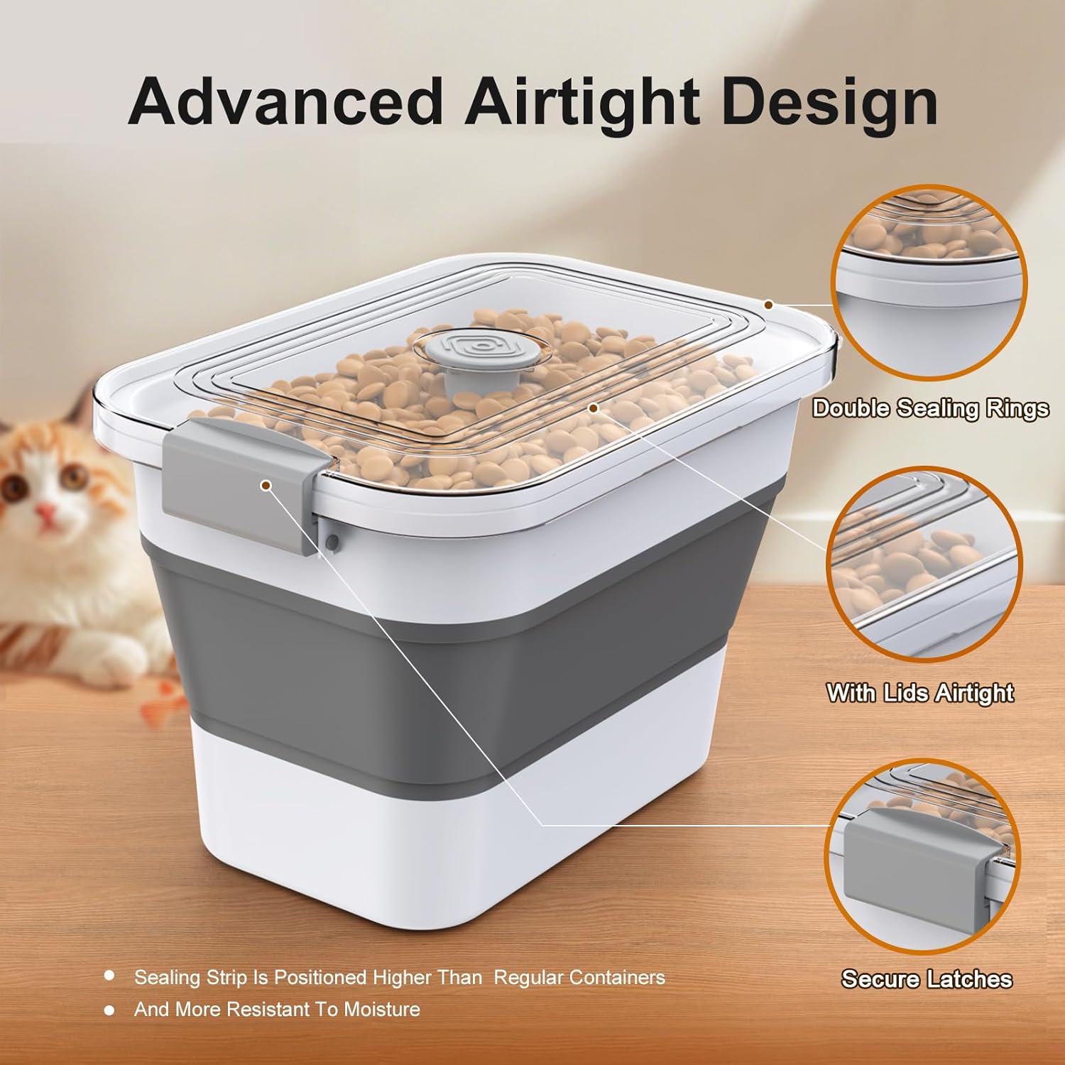 Air Tight Cat Food Container: The pet food storage containers have double airtight seals and fixed latches. Not easily opened by pets. The cat food storage container can keep food fresh for a longer time and pests out