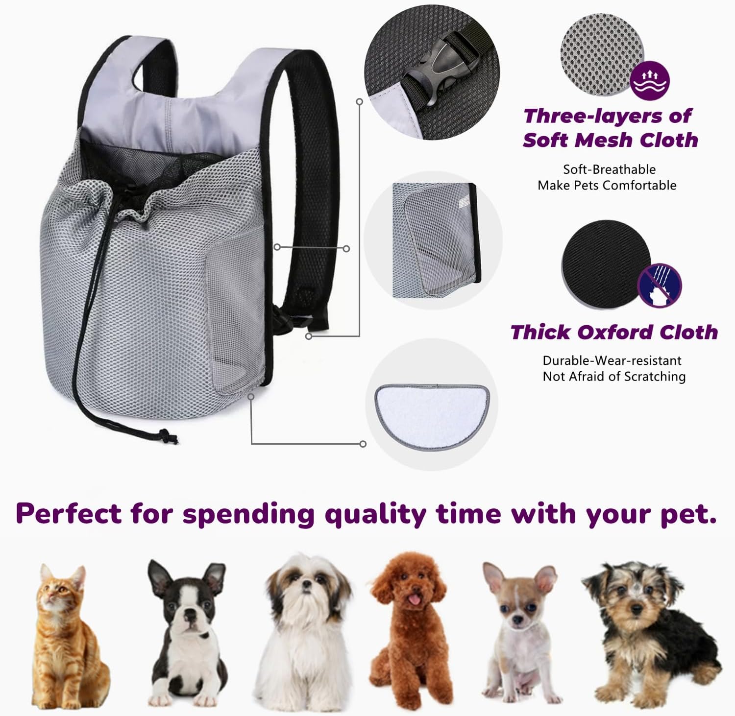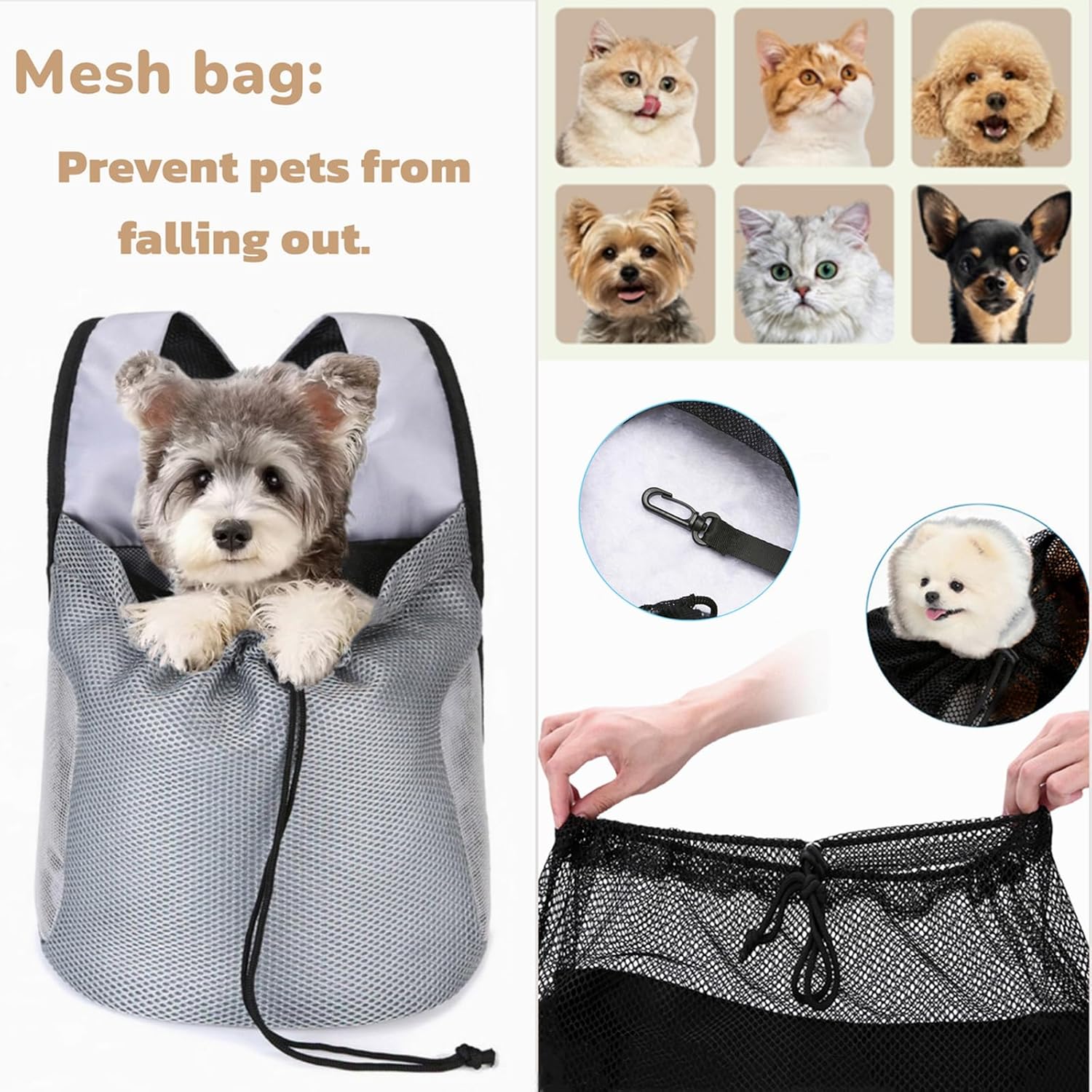 Dog Front Carrier Backpack,Ventilated Mesh Puppy Back Pack with Safety Belt,Adjustable Breathable Pet Carrier for Small Dogs Cats,Lightweight Doggy Backpack for Hiking Cycling Outdoor