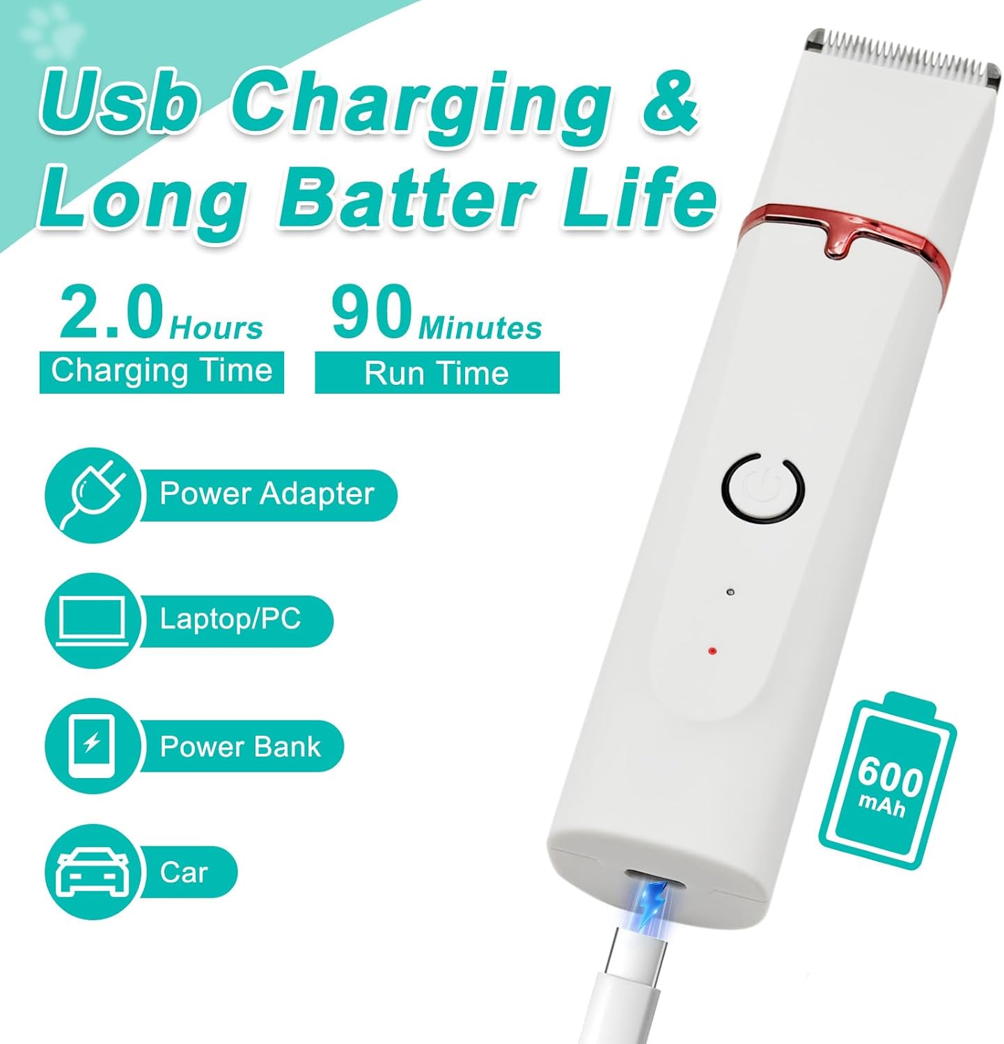 Dog Grooming Kit & Clipper – Low Noise, Cordless & Rechargeable Electric Pet Groomer, 4-in-1 Safe Trimmer for Dogs/Cats – Gentle on Paws, Face, Ears & Sensitive Areas
